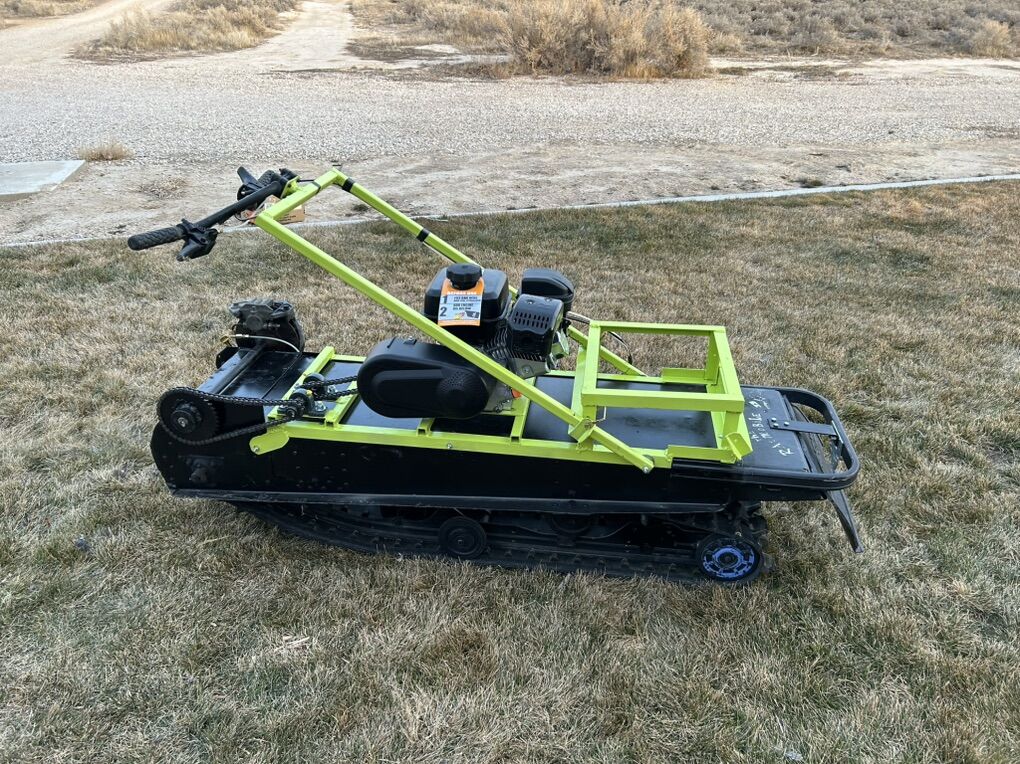 Newly built track sled for sale which I just finished. Built off a 93 Polaris Indy Chassis. I have the title. Hydraulic brakes, Predator 212cc motor, series 30 torque converter, tow hitch. Kill switch wired to handlebars. Suspension has been locked out. Handlebars fold over and lock in place. Will come with an extra belt. Also I’ve put a chain tensioner on it since these pictures were taken. Ready to make your life easier and increase your odds with the ladies all at the same time. $1,500 located in Gunnison Utah.