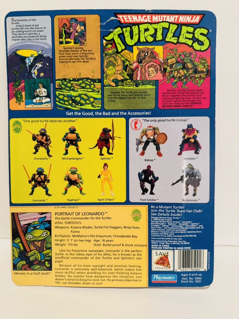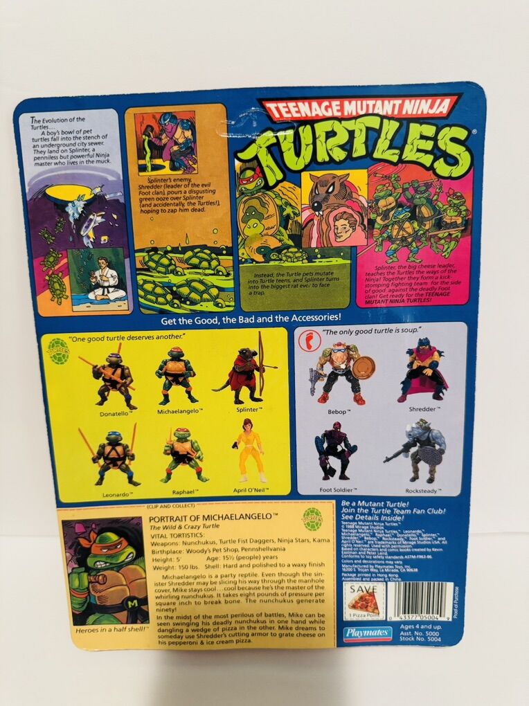 VenmoAll 4 Vintage Original unpunched 1988 Teenage Mutant Ninja Turtles figures 10 back MOC. Raphael, Leonardo., Michelangelo, Donatello. For 38 year old figures Card back and blister are in good condition. Message me for any questions. I will not ship or ship international. Local pick up only. $1000 or best offer.