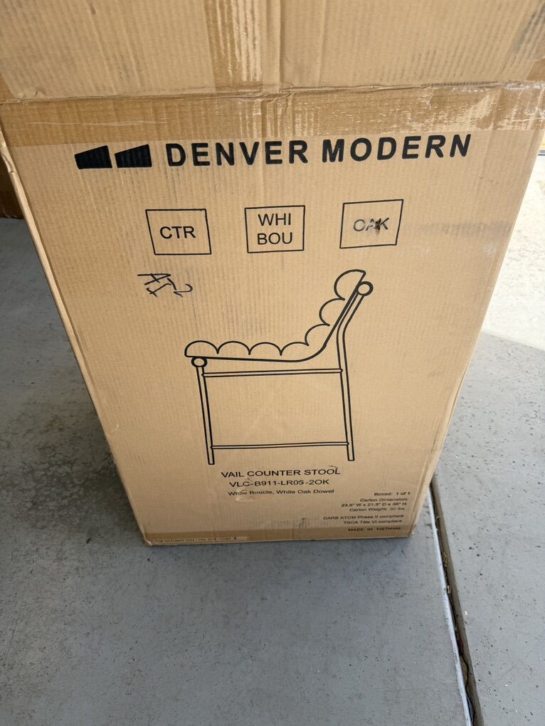 Brand new in box. Stylish Vail Stool by Denver Modern featuring a clean, modern design—perfect for a kitchen island, bar area, or as a statement accent piece.