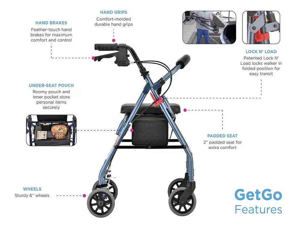 VenmoNOVA GetGo Classic Rollator Walker – Blue, Standard Size
