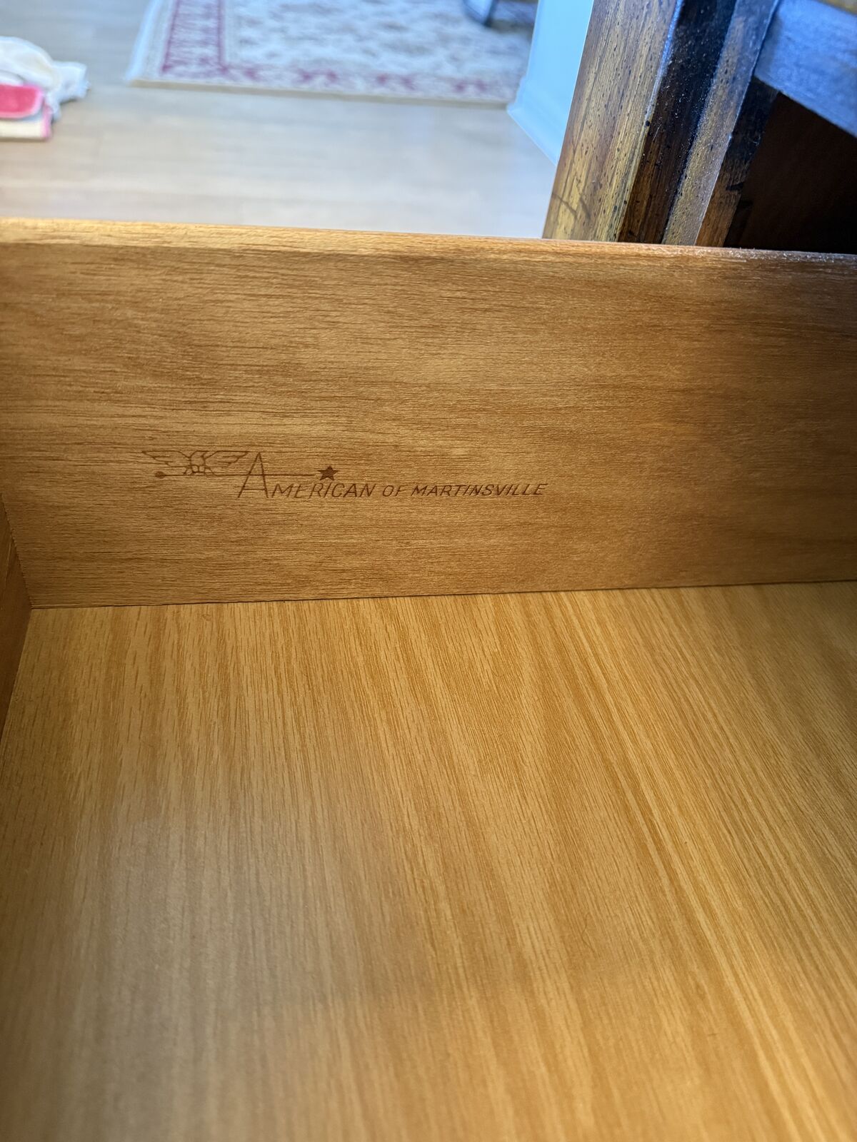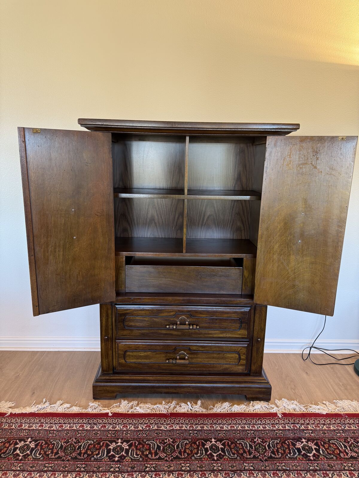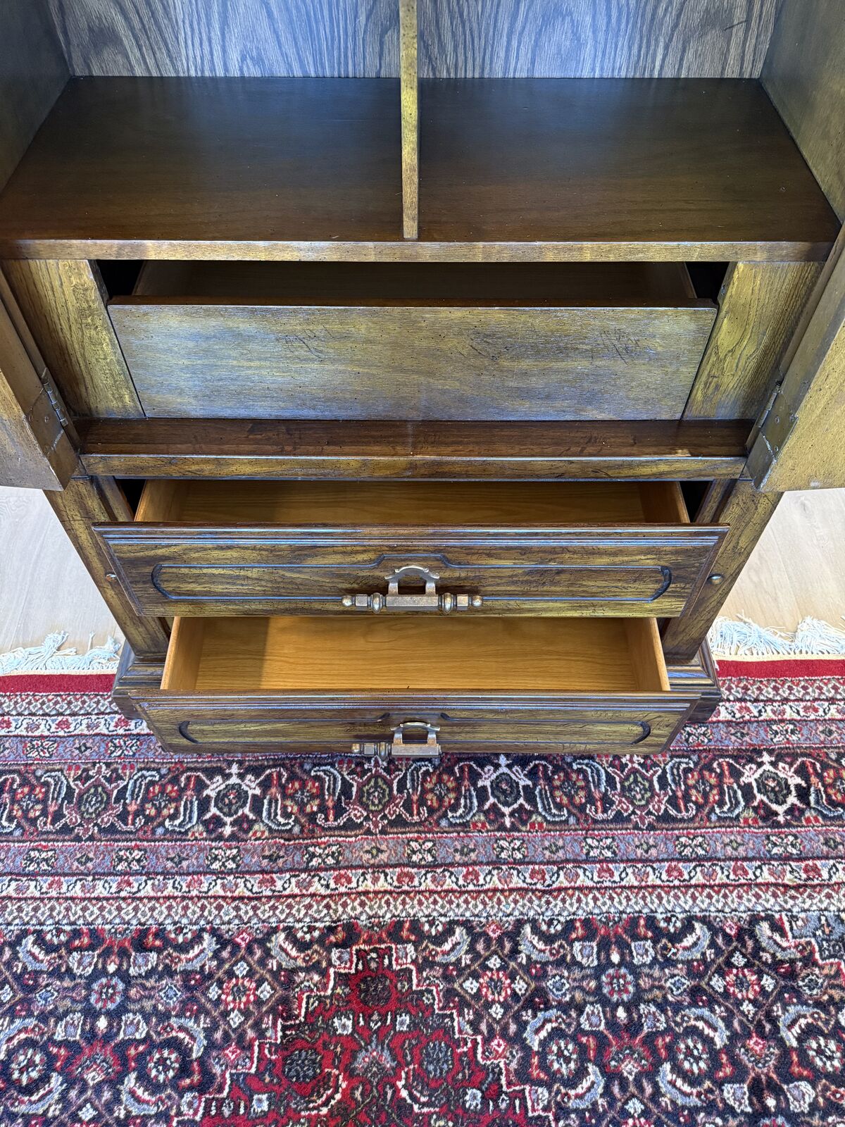Beautiful American of Martinsville solid wood cabinet with classic traditional / European-inspired detailing. This is a substantial, high-quality piece known for its craftsmanship and durability.