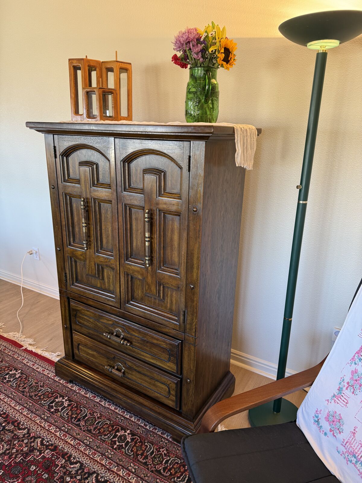 Perfect as an entry cabinet, bar cabinet, dining storage, or bedroom armoire.