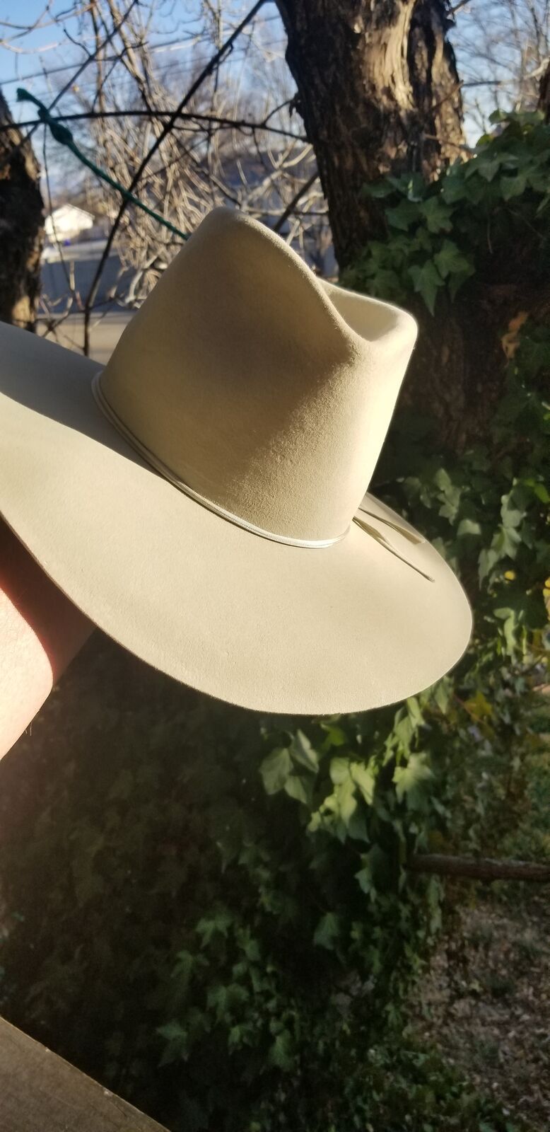Nice condition Resistol grey Cowboy hat,Tall wide 4" brim clean - has a couple of very small tiny indents on the back of the brim underneath. 4x felt professionally reshaped for more of a ranch style but can be styled to your personal preference. RESISTOL CATTLEMAN $65. OBO cash no trades
