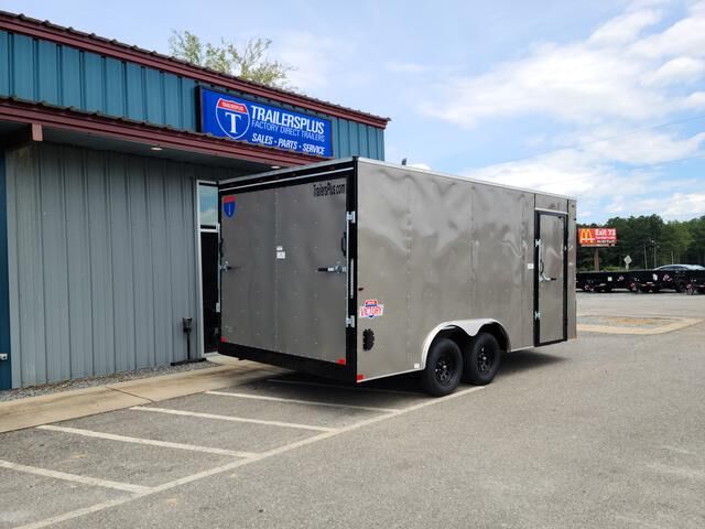 Trailer Type: VICTV10216TA2 Size: 102 X 16 GVWR: 7000 lbs Axles: (2) Coupler: 2 5/16" Suspension: Spring Axle Tires: Radial Lights: LED Exterior Color: PEWTER