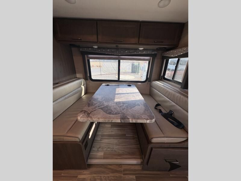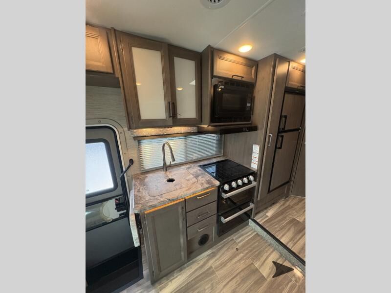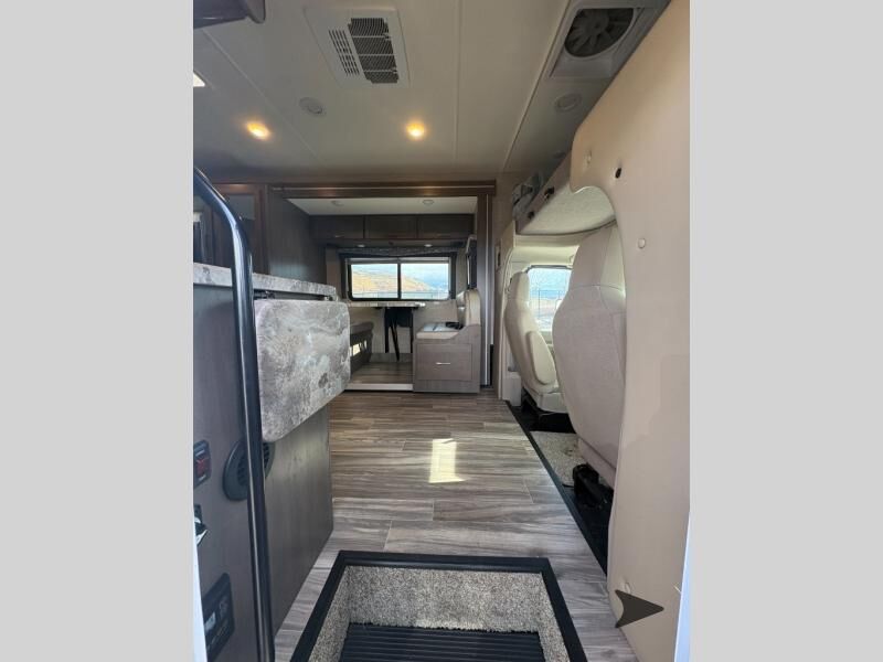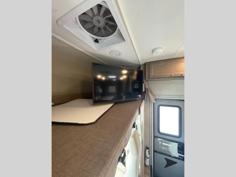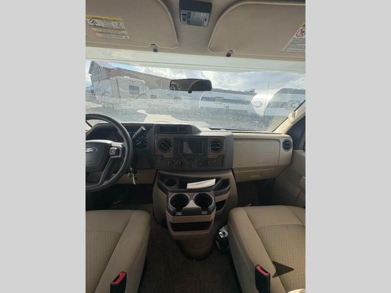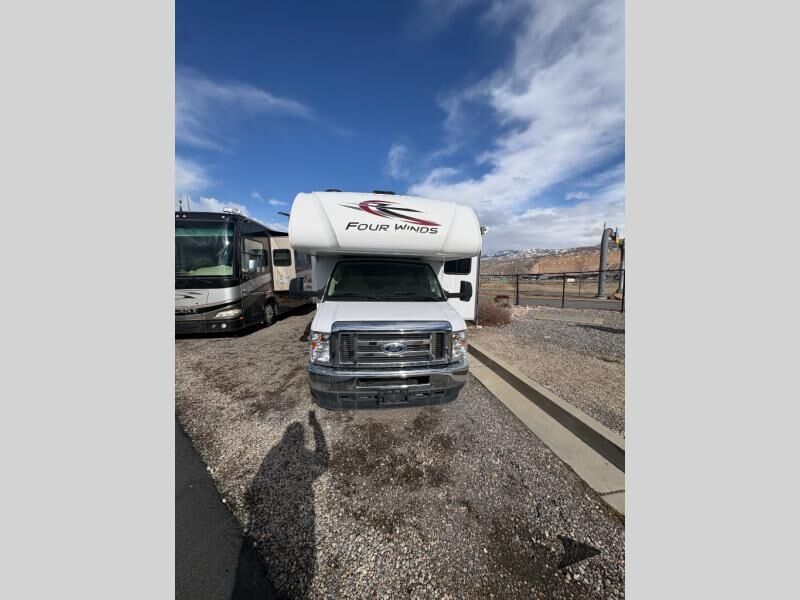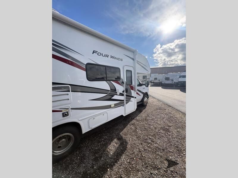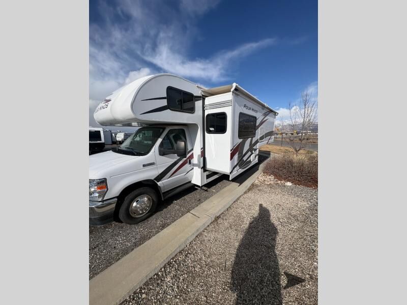 Thor Motor Coach Four Winds Class C gas motorhome 24F highlights: Full-Wall Slide Two Closets Cab Over Bunk Pantry Electric Stabilizing System Looking for some family fun time, ready to visit friends and host guests, enjoy traveling to see new scenery; well get on the road with this coach! The full-wall slide will impress anyone with all the floor space available when you set up camp. This slide holds the living area dream dinette, two closets and the queen bed in the rear corner semi-private bedroom. You might even like to add the optional 32" TV and close the privacy curtain at night. The full bathroom will leave you refreshed and ready for shopping, hiking or going to bed. The galley kitchen offers everything to make warm meals, store leftovers and beverages as well as stow your goodies in the pantry. And the flip-up countertop gives you more prep and serving space. With any Four Winds Class C gas motorhome, you can travel in a trustworthy Ford E-Series chassis with 350HP, or a Chevrolet chassis with 323HP if you choose that option which is available on several models. Each is built with welded sidewall cage construction and a welded tubular aluminum roof, a one-piece fiberglass cap, and includes a slick fiberglass exterior with graphics package for style and years of enjoyment on the open road. Inside, you will enjoy the well-equipped kitchen, the spacious bathroom, the sleeping accommodations and the Winegard ConnecT 2.0 WiFi/4G/TV antenna that allows you to stay connected. With several floorplans to choose from and options to add, you will surely find one that fits your family's needs or your friend's approval. Choose today!