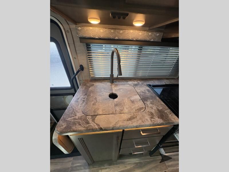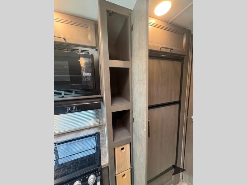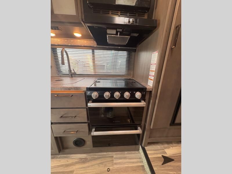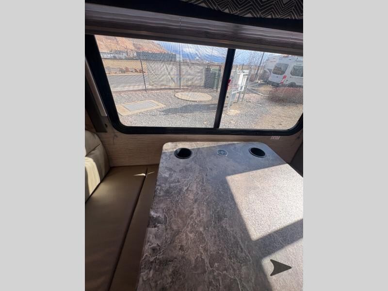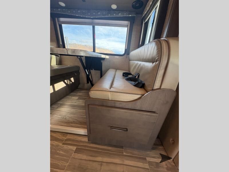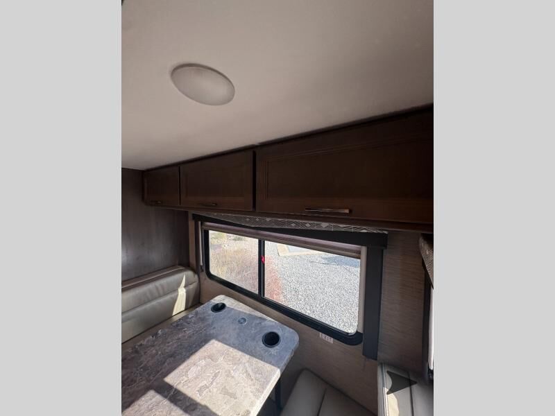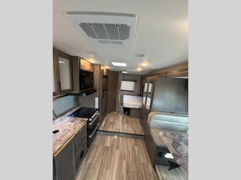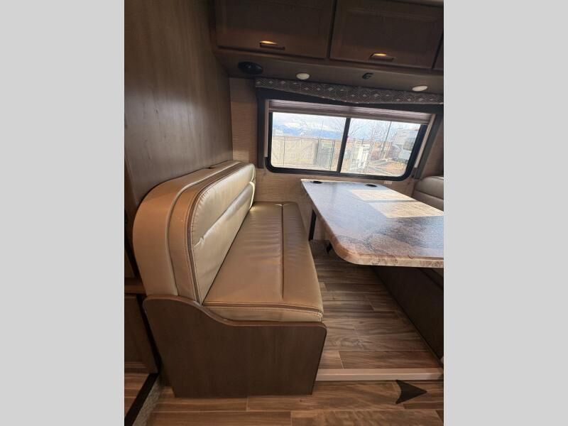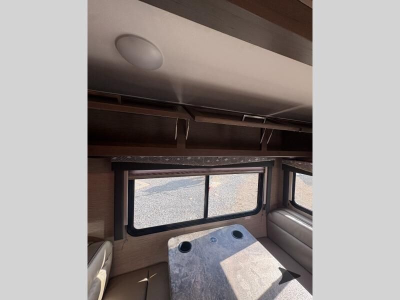 Thor Motor Coach Four Winds Class C gas motorhome 24F highlights: Full-Wall Slide Two Closets Cab Over Bunk Pantry Electric Stabilizing System Looking for some family fun time, ready to visit friends and host guests, enjoy traveling to see new scenery; well get on the road with this coach! The full-wall slide will impress anyone with all the floor space available when you set up camp. This slide holds the living area dream dinette, two closets and the queen bed in the rear corner semi-private bedroom. You might even like to add the optional 32" TV and close the privacy curtain at night. The full bathroom will leave you refreshed and ready for shopping, hiking or going to bed. The galley kitchen offers everything to make warm meals, store leftovers and beverages as well as stow your goodies in the pantry. And the flip-up countertop gives you more prep and serving space. With any Four Winds Class C gas motorhome, you can travel in a trustworthy Ford E-Series chassis with 350HP, or a Chevrolet chassis with 323HP if you choose that option which is available on several models. Each is built with welded sidewall cage construction and a welded tubular aluminum roof, a one-piece fiberglass cap, and includes a slick fiberglass exterior with graphics package for style and years of enjoyment on the open road. Inside, you will enjoy the well-equipped kitchen, the spacious bathroom, the sleeping accommodations and the Winegard ConnecT 2.0 WiFi/4G/TV antenna that allows you to stay connected. With several floorplans to choose from and options to add, you will surely find one that fits your family's needs or your friend's approval. Choose today!