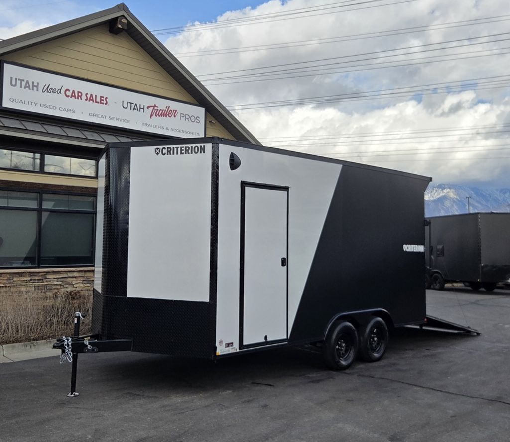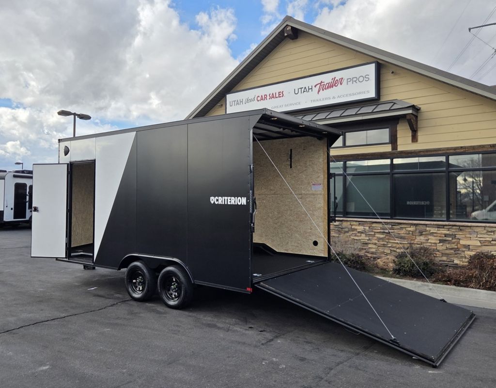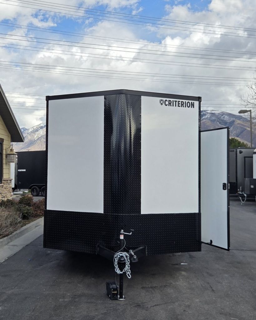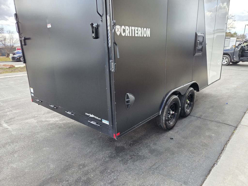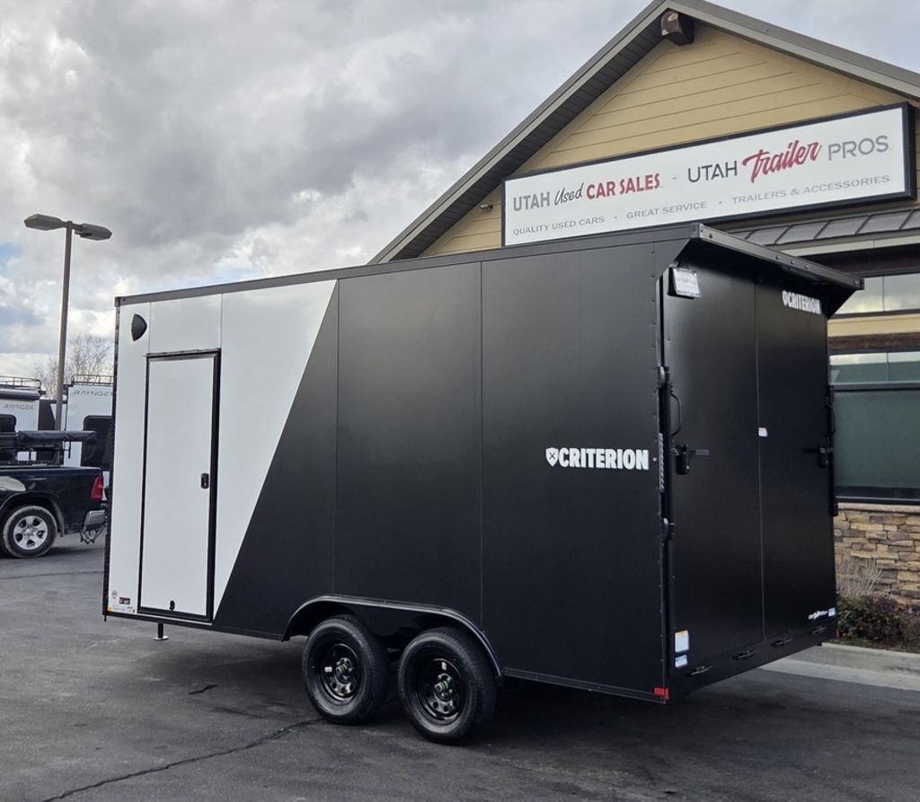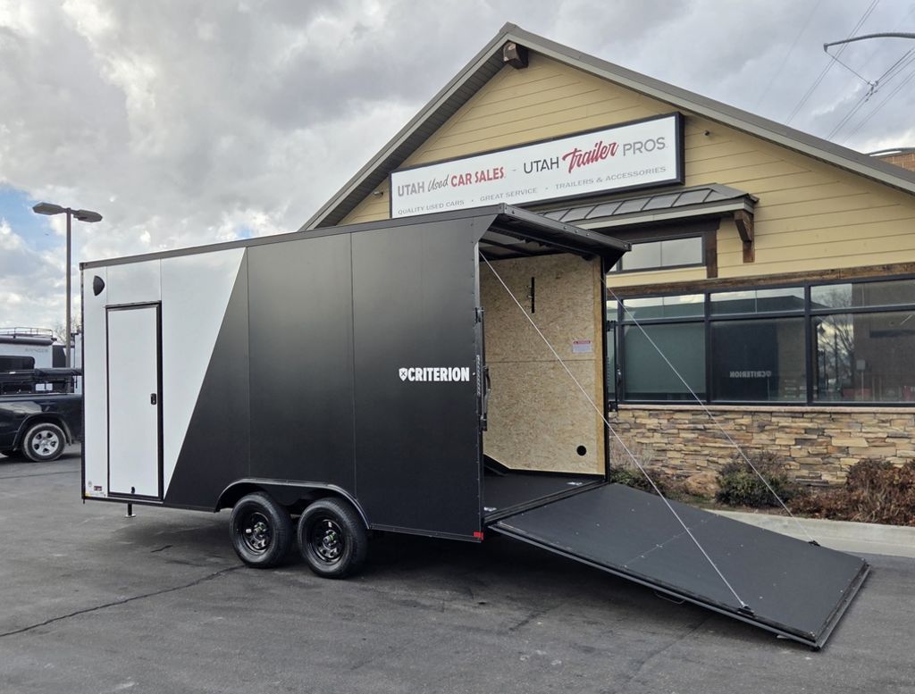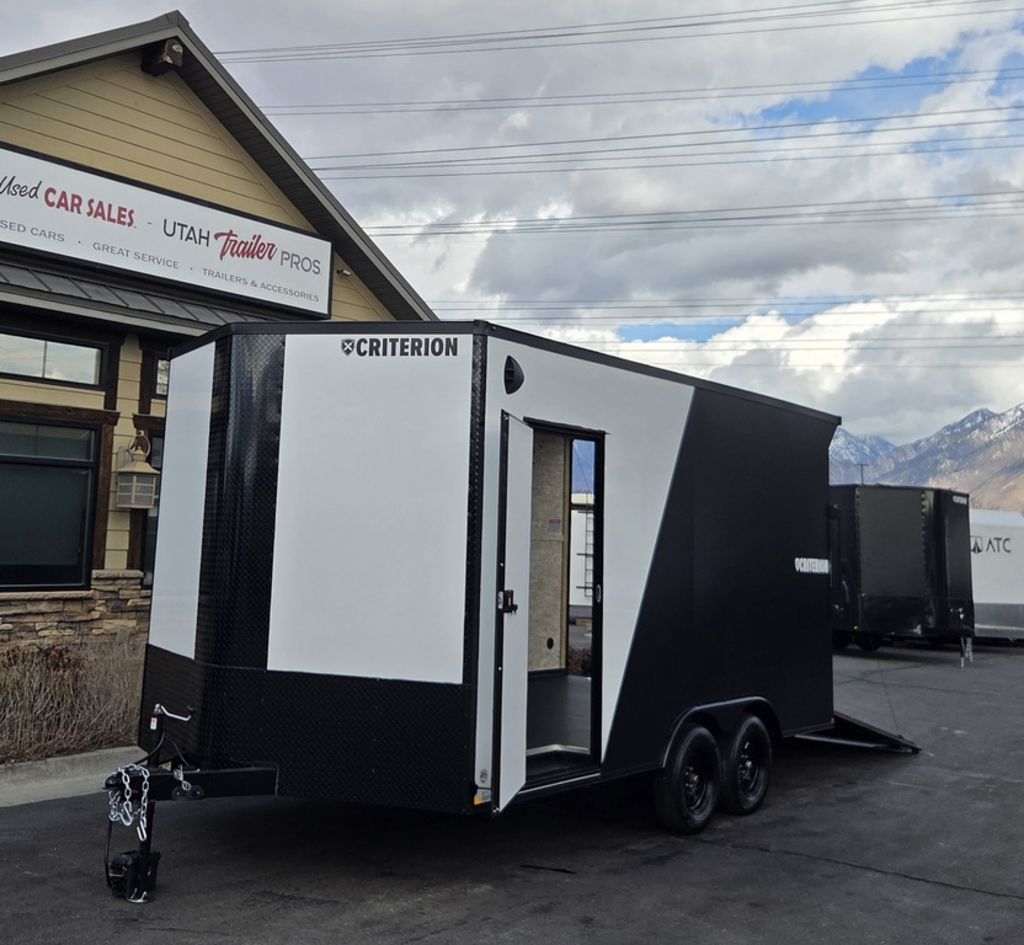 LIMITED TIME $129 A MONTH WITH ZERO DOWN WITH OUR SPECIAL LOCAL CREDIT UNION PARTNER!!! NO PRE-PAYMENT PENALTIES!!! CRITERION UTV Pkg!!! 6 inches added height for an 87 Inch Rear Entry Height, and a 90-inch interior Height!!! Extra Tough Poly Bead Rubber Floor! Industry Leading .080 PolyCore Aluminum Exterior!!! Rear Spoiler with LED Load Lights! Roof Vent. 6x 5000# Heavy Duty Recessed and back plated D-Rings!!! Drivers Side Side Access Door! Fuel Pass Through Door! Criterion Trailers are Super Premium Steel Framed Trailers with a 3 Year Factory Warranty!!! Come take a look at Criterion to see unparalleled quality!!! 7TA009904