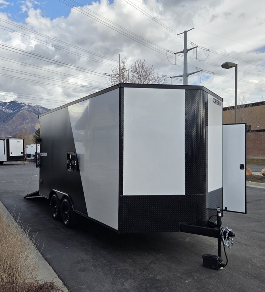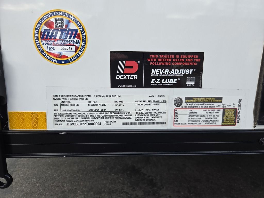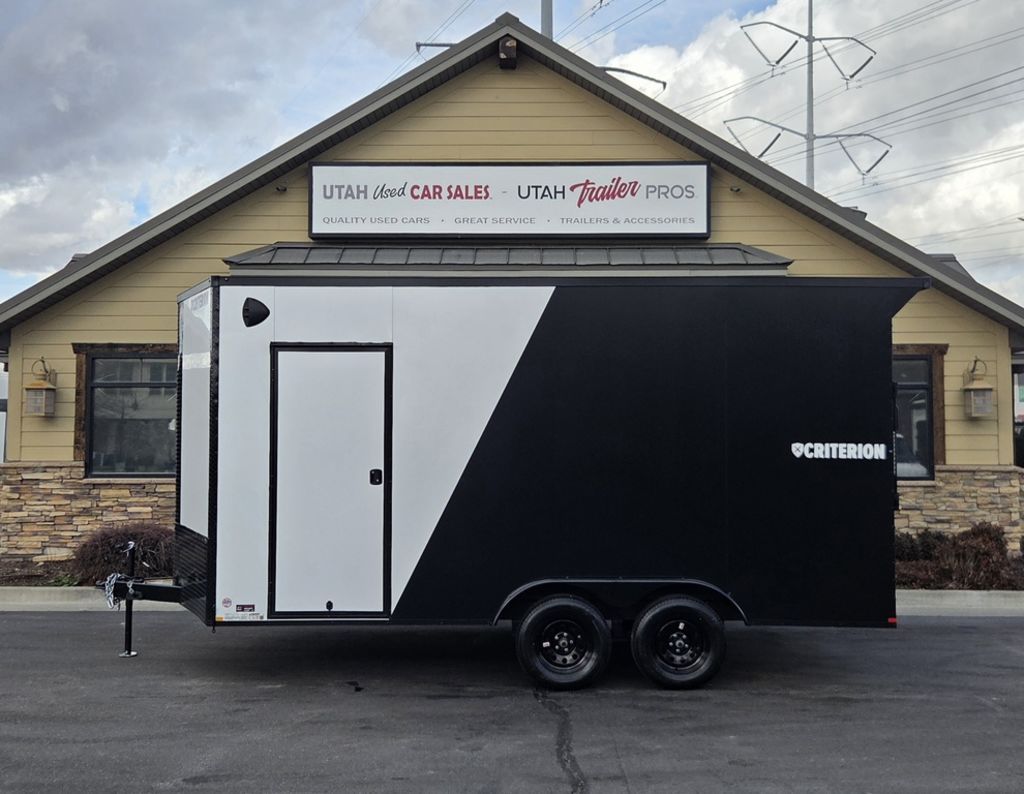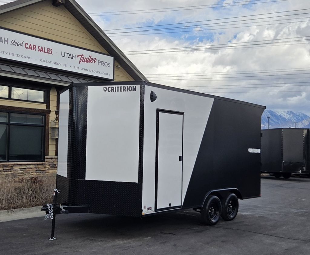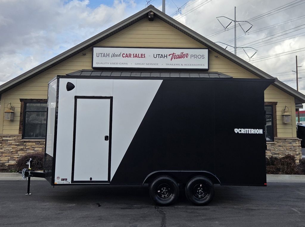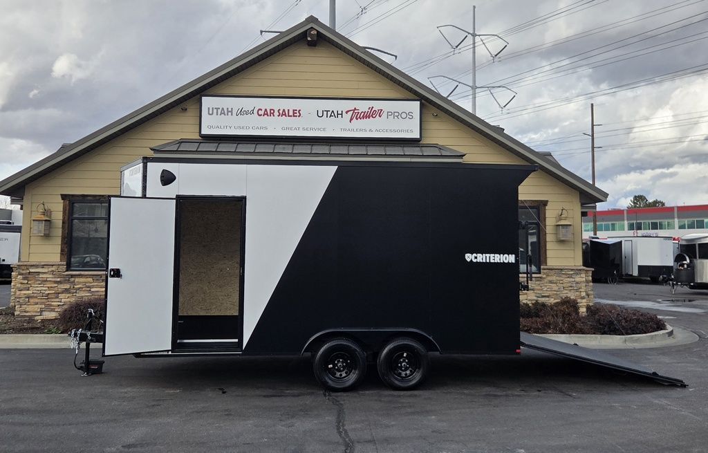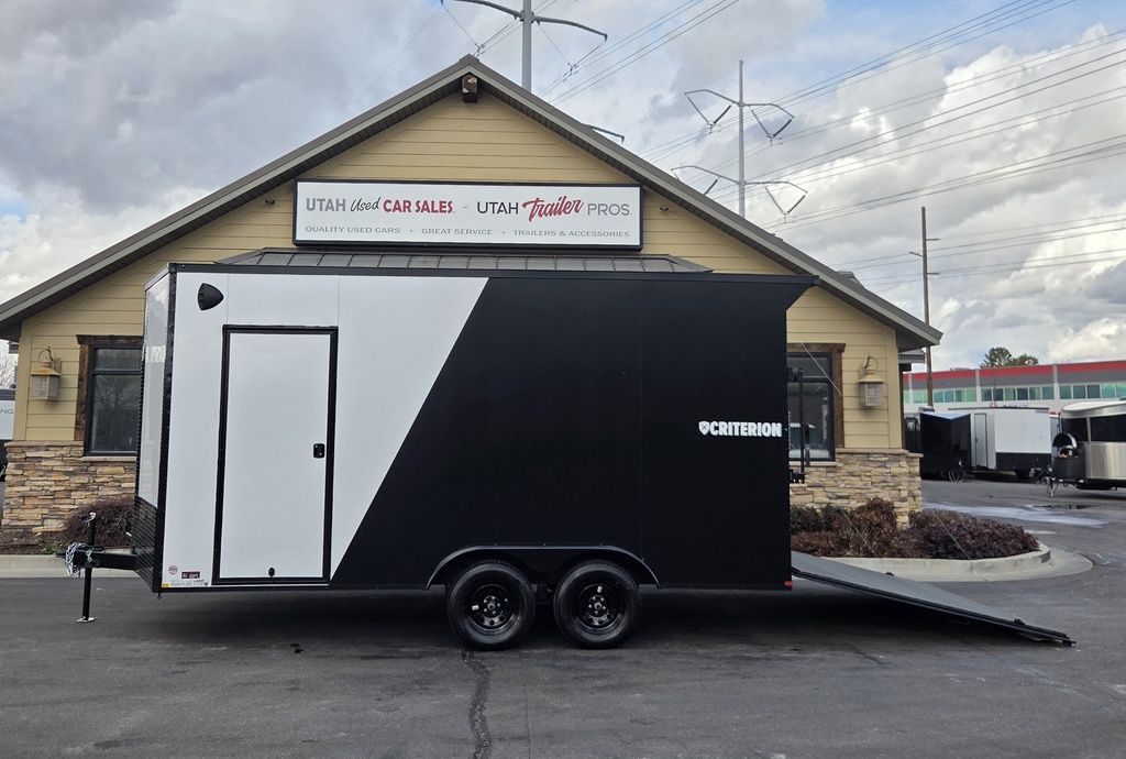 LIMITED TIME $129 A MONTH WITH ZERO DOWN WITH OUR SPECIAL LOCAL CREDIT UNION PARTNER!!! NO PRE-PAYMENT PENALTIES!!! CRITERION UTV Pkg!!! 6 inches added height for an 87 Inch Rear Entry Height, and a 90-inch interior Height!!! Extra Tough Poly Bead Rubber Floor! Industry Leading .080 PolyCore Aluminum Exterior!!! Rear Spoiler with LED Load Lights! Roof Vent. 6x 5000# Heavy Duty Recessed and back plated D-Rings!!! Drivers Side Side Access Door! Fuel Pass Through Door! Criterion Trailers are Super Premium Steel Framed Trailers with a 3 Year Factory Warranty!!! Come take a look at Criterion to see unparalleled quality!!! 7TA009904