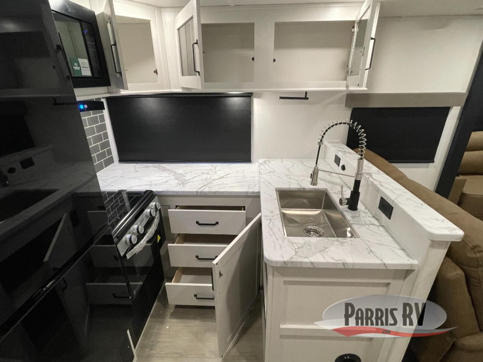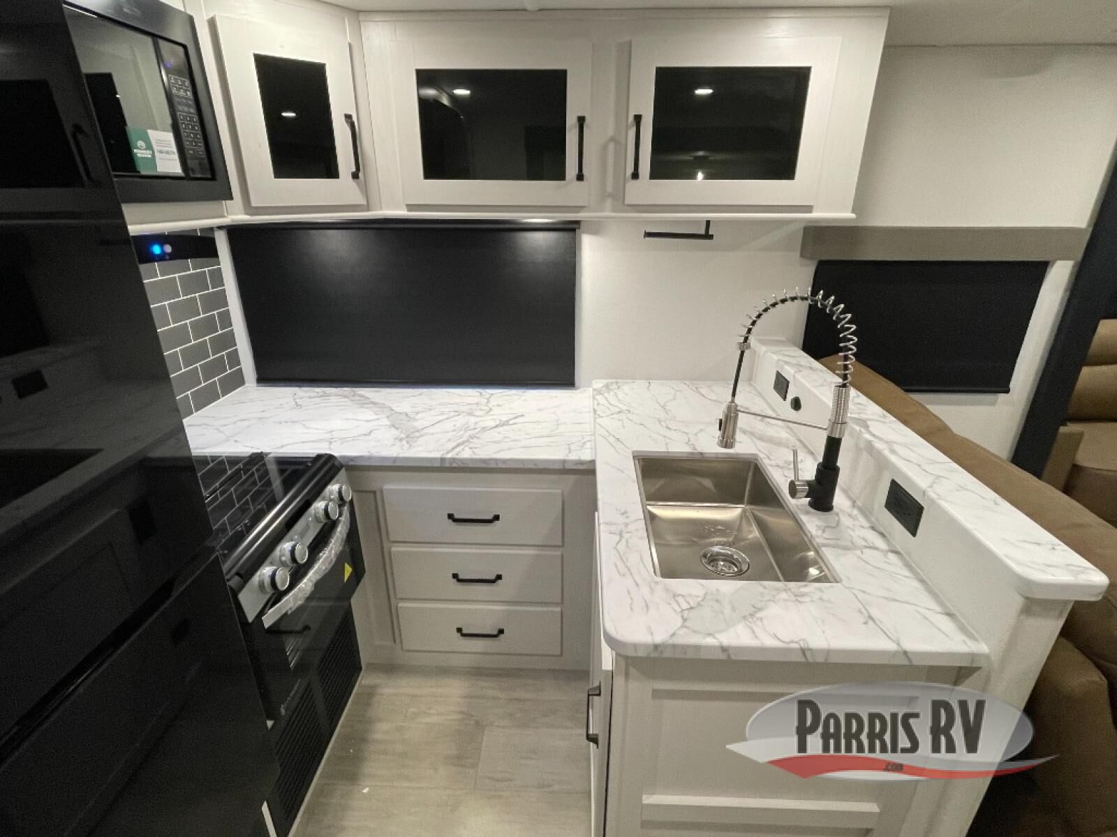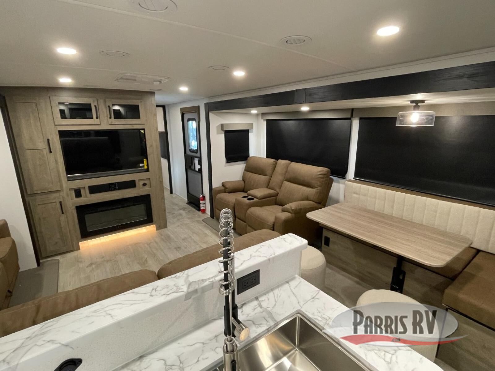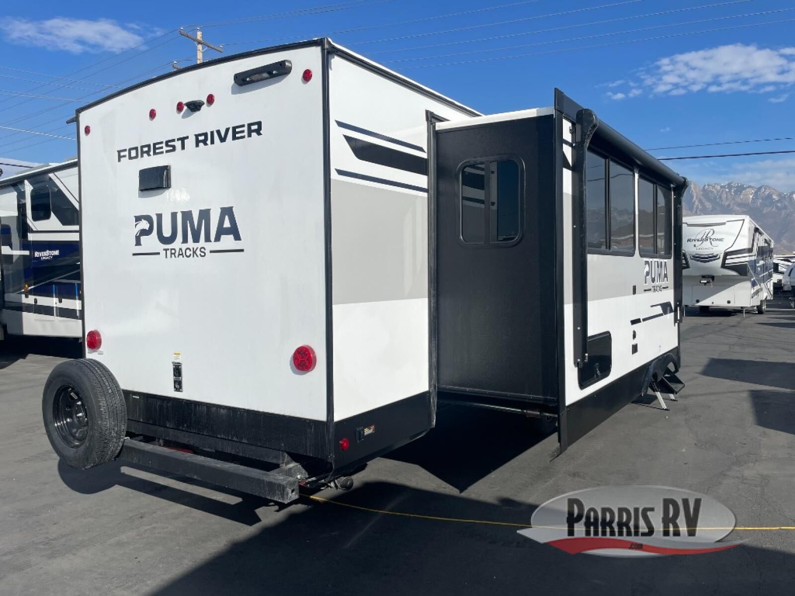 Each Puma Tracks travel trailer by Forest River is constructed with a fully enclosed/heated underbelly for added protection against the elements, plus a fully laminated roof and rear wall for durability. The slam latch baggage doors with magnets will make it easier than ever to pack up your camp gear, and the power awning with LED lights will provide shade during the day and inviting ambiance at night. Head inside to enjoy the roller shades, smoked glass kitchen cabinet doors, stainless-steel sink, and LED lights to keep your space well lit. Some of the available options include a bedroom A/C, a Wi-Fi booster, heated holding tanks, and more!