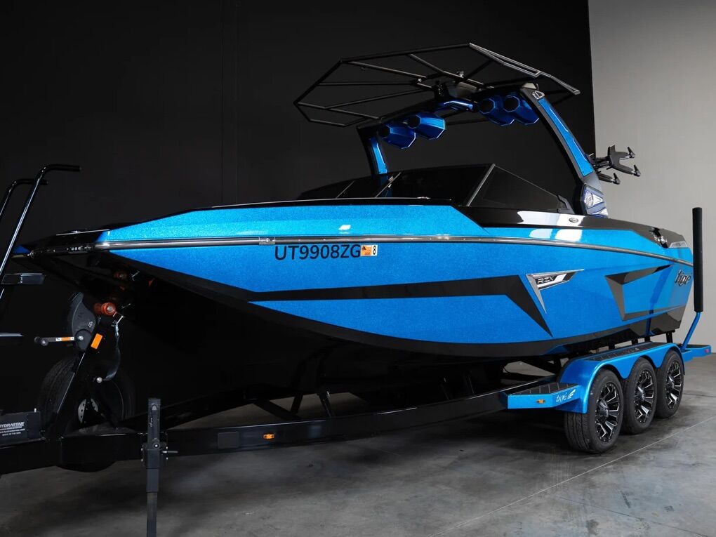 ***Options include *** *Supercharged motor *Thruster *Power swim step *4 tower speakers, 2 subs *Underwater lights *Triple axle trailer included in price *Over tower cover *Extended front and rear bimini shades *Full factory warranty until 2030 *Heater *Heated seats *Electronic adjustable captain chair *Rear surf locker *Built in air pump
