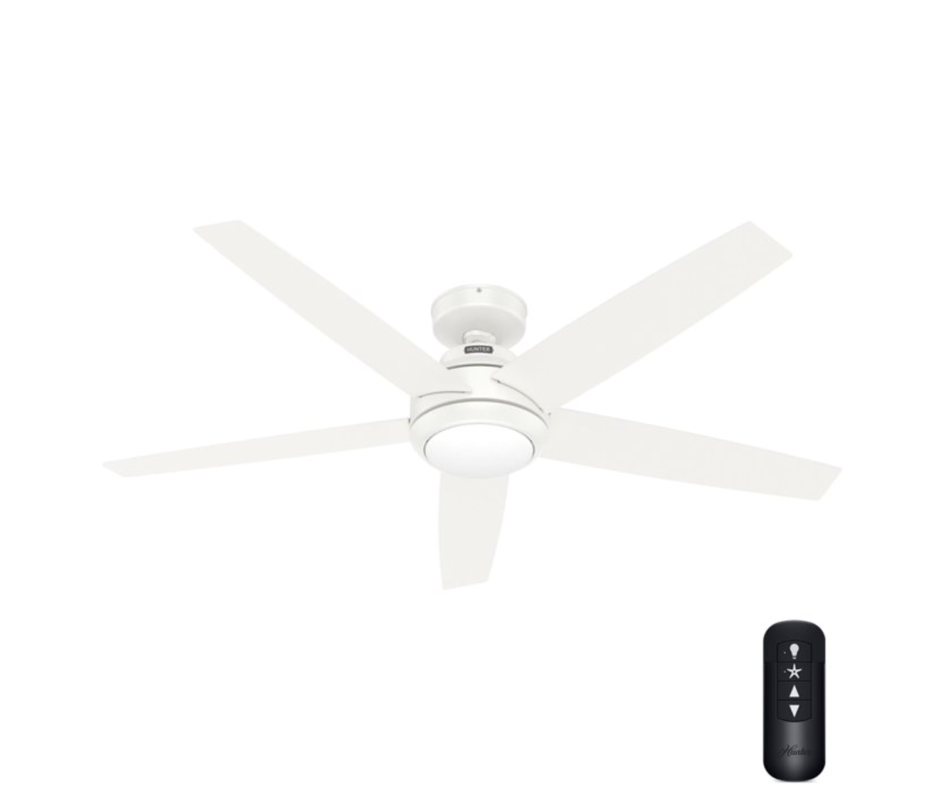 Edgy and chic, this fan is engineered with Hunter's SureSpeed Guarantee to deliver airflow you can feel while maintaining a quiet, wobble-free performance. Kick your game room up a notch or give your dinner guests something to talk about with the Zayden ceiling fan. THE ZAYDEN: A medium-sized, modern ceiling fan perfect for your bedroom, bonus room/game room, dining room, fitness room, guest bedroom, laundry room, living room/great room, master bedroom, office Surespeed and whisperwind: 3-speed whisperwind reversible motor and exclusive SureSpeed Technology by Hunter deliver ultra-powerful airflow for high-speed cooling with whisper-quiet and wobble-free performance Airflow: strong airflow up to 6109 cubic ft. per minute (CFM) on high speed Premium control: handheld remote included for easy fan adjustments from anywhere in the room Bulbs included: includes one, 18-Watt energy-efficient, dimmable LED bulbs Premium glass shading: the light kit includes premium painted cased white glass shading Indoor only: this ceiling fan is ETL rated for indoor use only, making it ideal for spaces like living rooms, bedrooms, home offices, and kitchens BLADE FINISH: 5 Fresh White non-reversible blades included WINTER AND SUMMER: Reversible motor allows you to change the direction of your fan from downdraft mode during the summer which helps cool the room to updraft mode during the winter to help circulate trapped warm air near the ceiling
