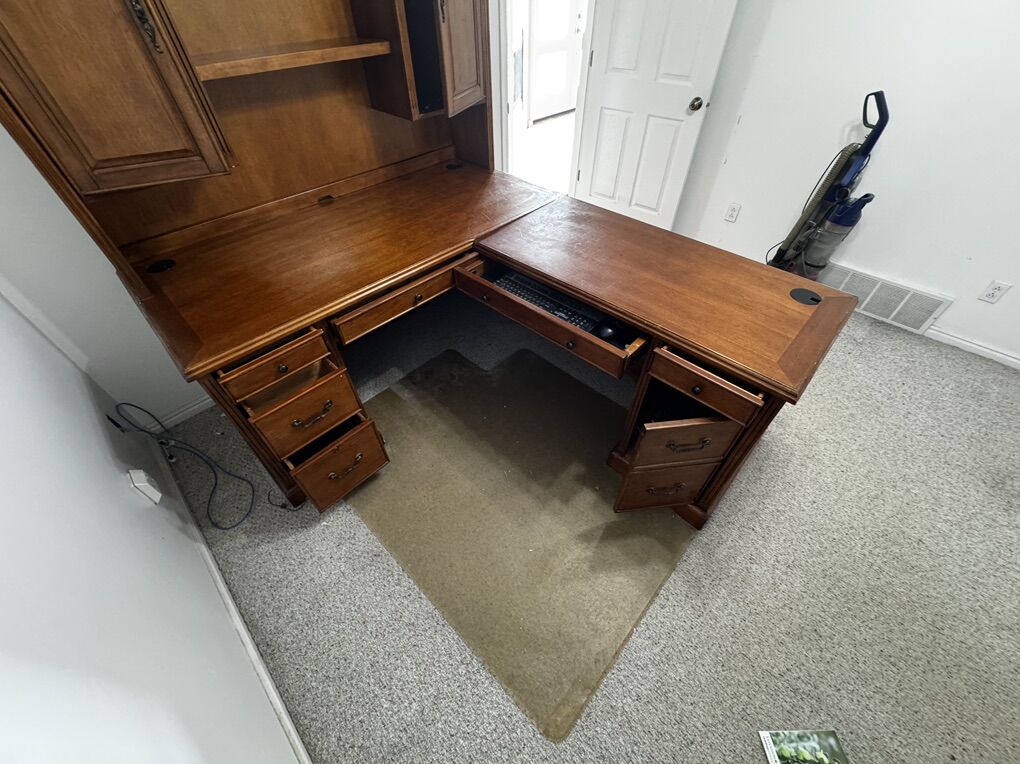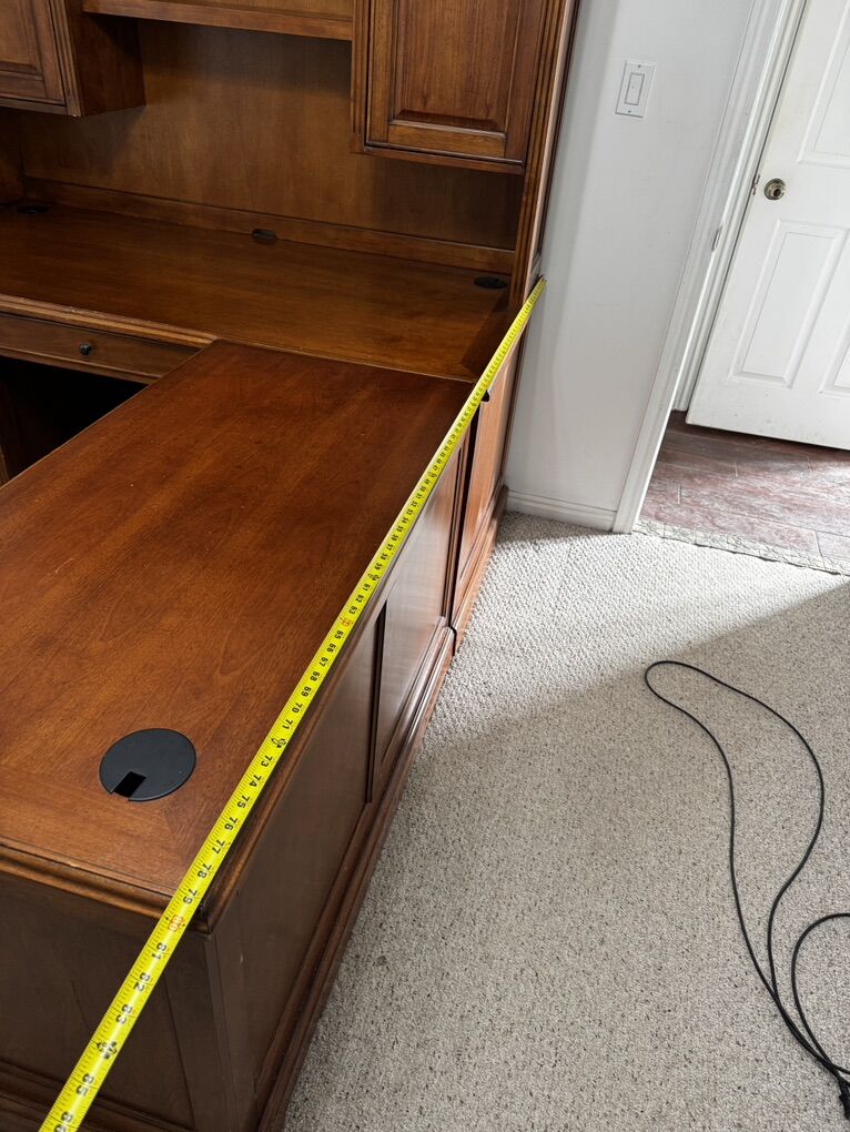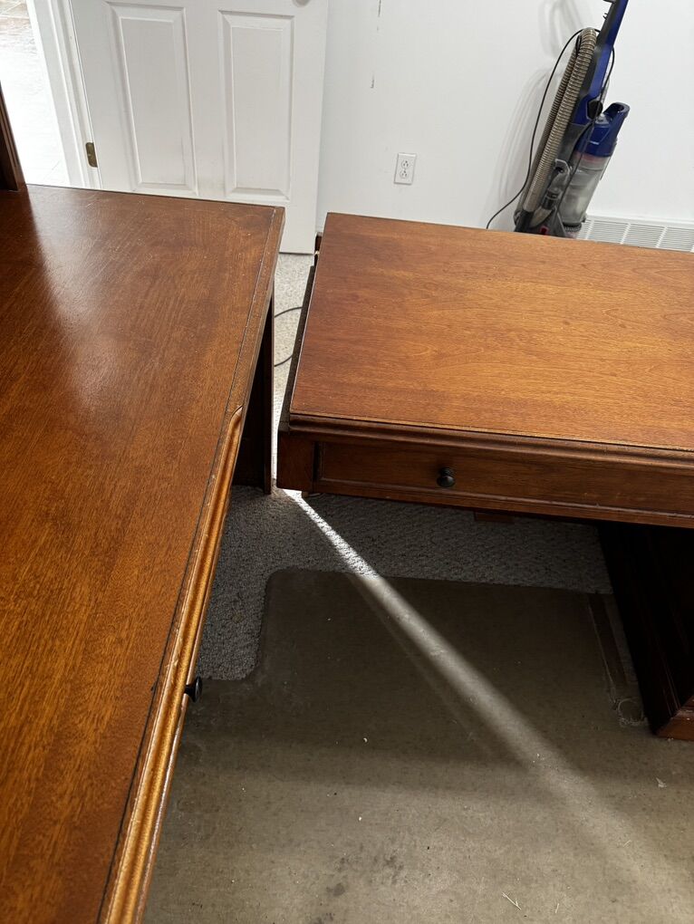 VenmoI have a large beautiful solid wood desk available. Two piece, top and bottom, with third piece extension. This is constructed out of solid wood, not a cheap flimsy particle board assembly, but real wood.