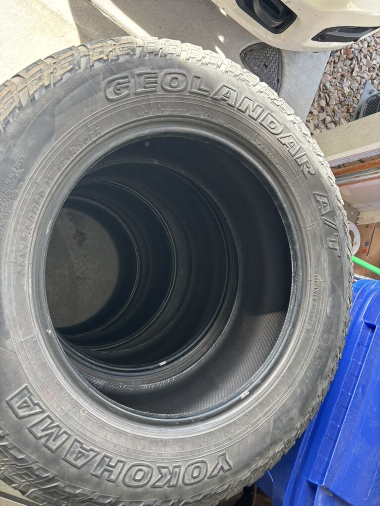 Venmo4 all-terrain tires, all showing even wear with plenty of tread left. Rotated regularly. Never punctured, never patched. Came off my ram 2500 Cummins. Asking $325 obo