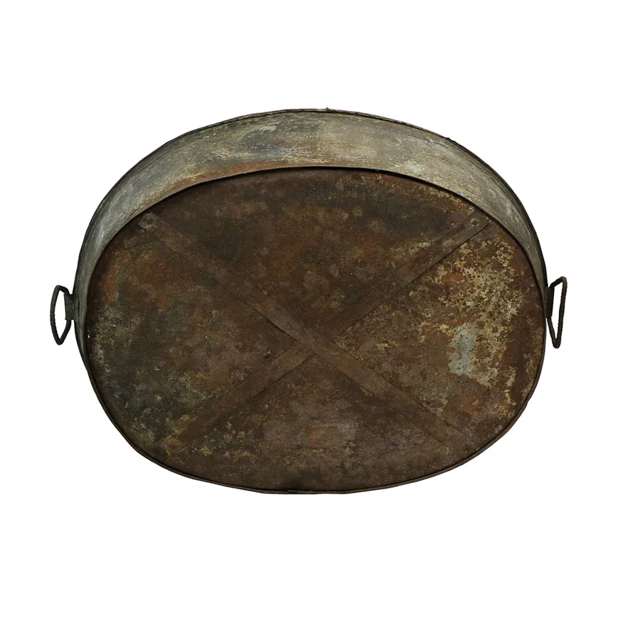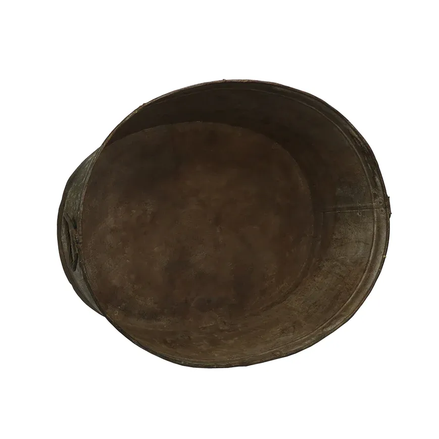 ApplePayThe weathered Vintage Zinc Basin served as a wash basin in India. The galvanized metal tub can be repurposed as an oversize planter or painted and used indoors for holding accent bedding supplies. Condition and size vary.