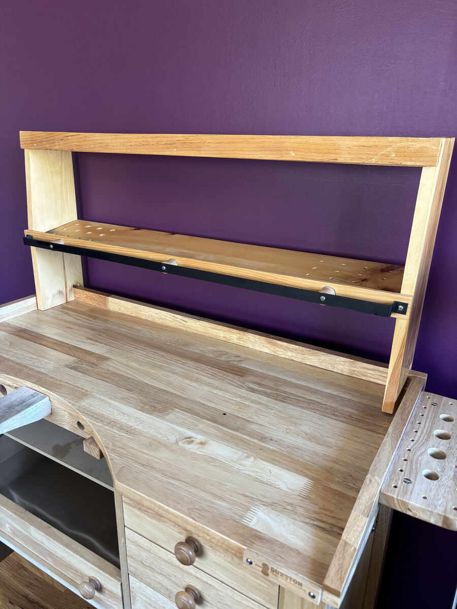Full-width bench-top shelving system Holds pliers, burs, files, gauges, and tools Keeps tools off your work surface and within reach