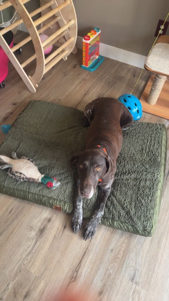 The GSP Sky is a 5 year old spayed female. She is potty trained does well with children and other dogs. She is probably the laziest German shorthair you will meet. She is very cuddly and overall a very good companion.