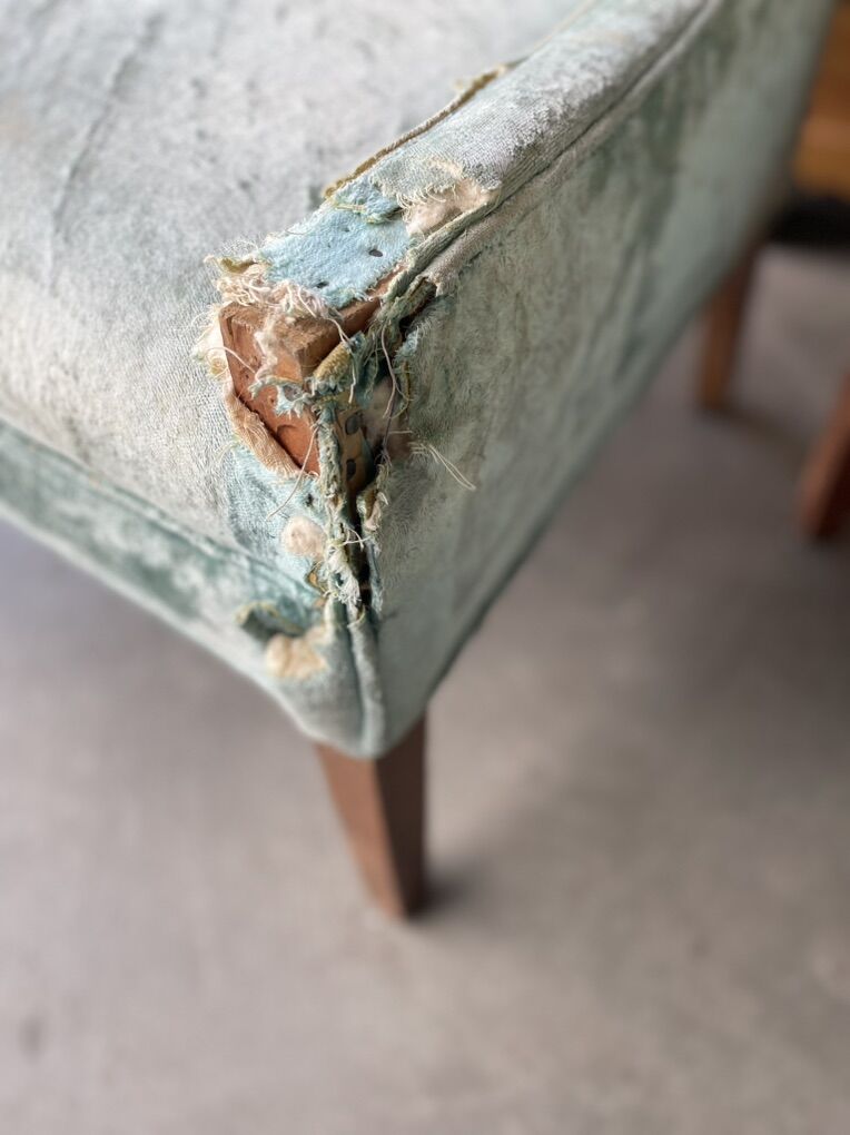 VenmoMatching accent chairs with a beautiful tufted back and solid wood legs. Great shape and very sturdy. These chairs have excellent bones and would be perfect for a DIY or upholstery project. Fabric is torn (see photos) and will need to be fully reupholstered. Frames are strong. $40 for both.