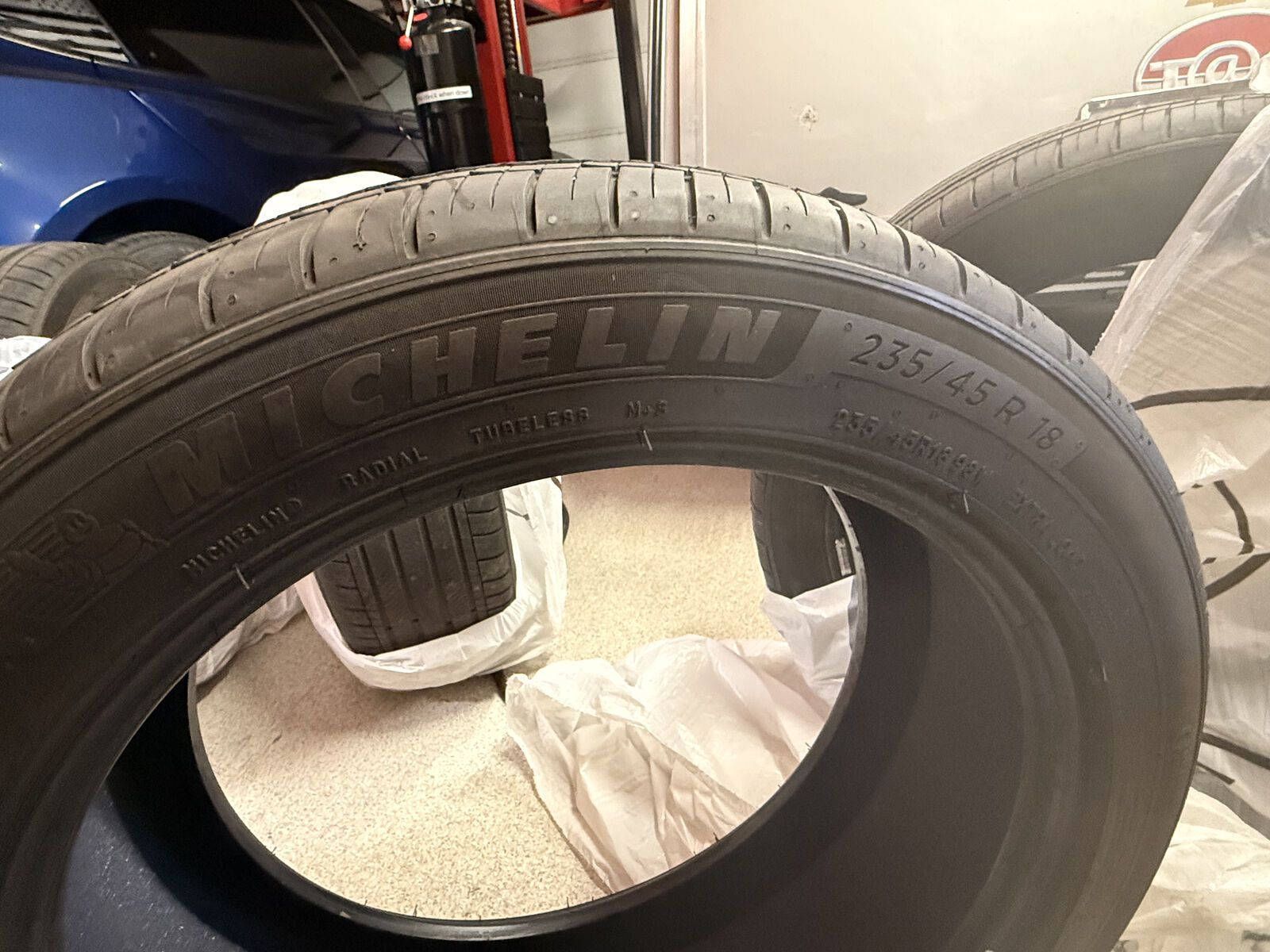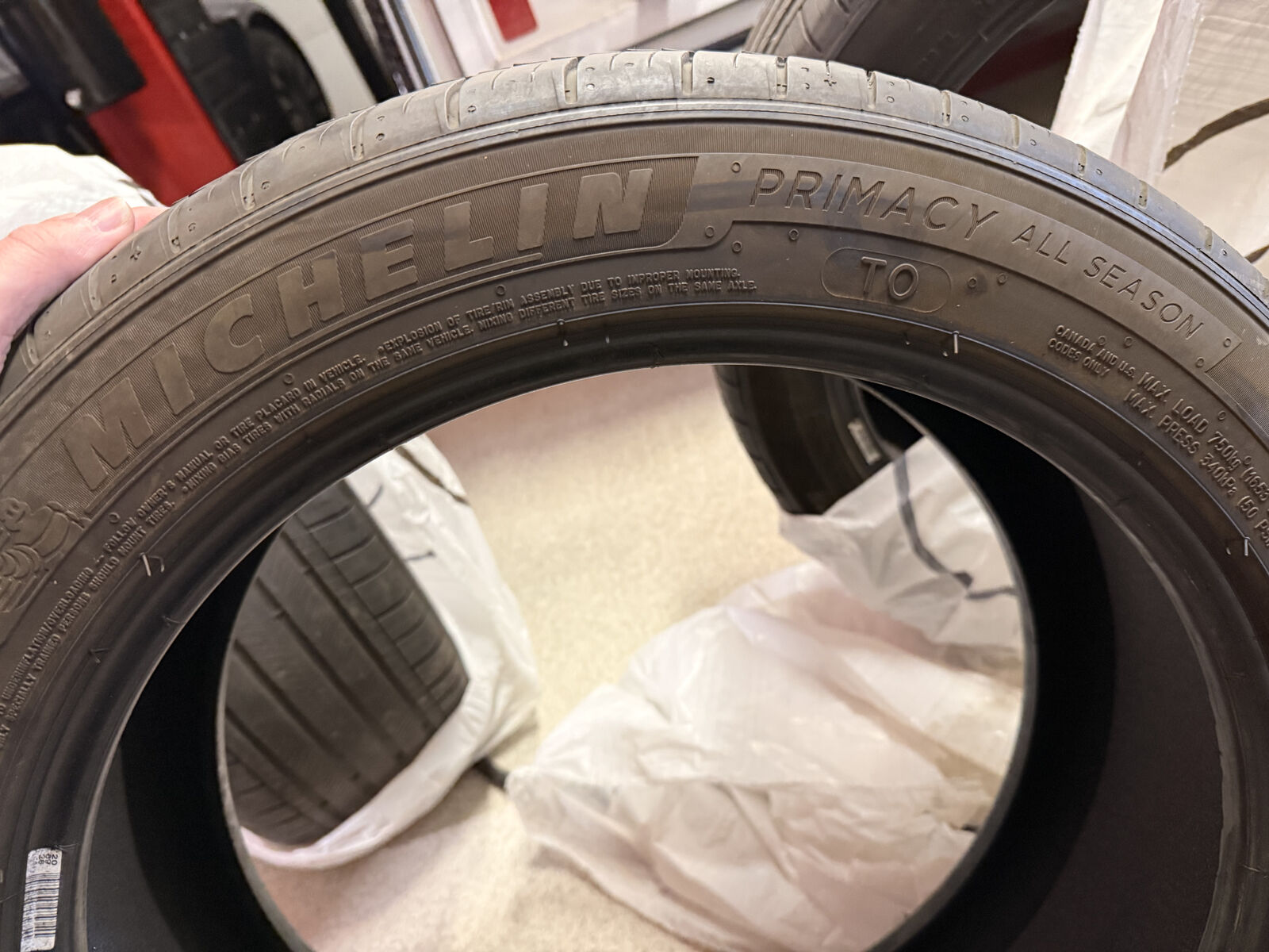 Description: Selling two Michelin Primacy All Season tires removed from my 2024 Tesla Model 3. Size 235 45 R18 . Only ~11,500 miles and both measure just over 7/32 tread (New tire measures 8/32) (see photos).