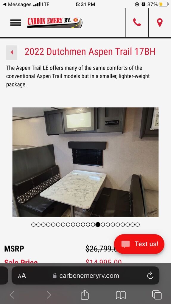 Selling our 2022 Aspen Trail 17BH. It’s been a great little trailer for us and super easy to tow. It’s only about 3,000 lbs dry, so even a V6 truck or SUV can pull it without a problem. Perfect size for beginners or anyone who doesn’t want a big trailer.