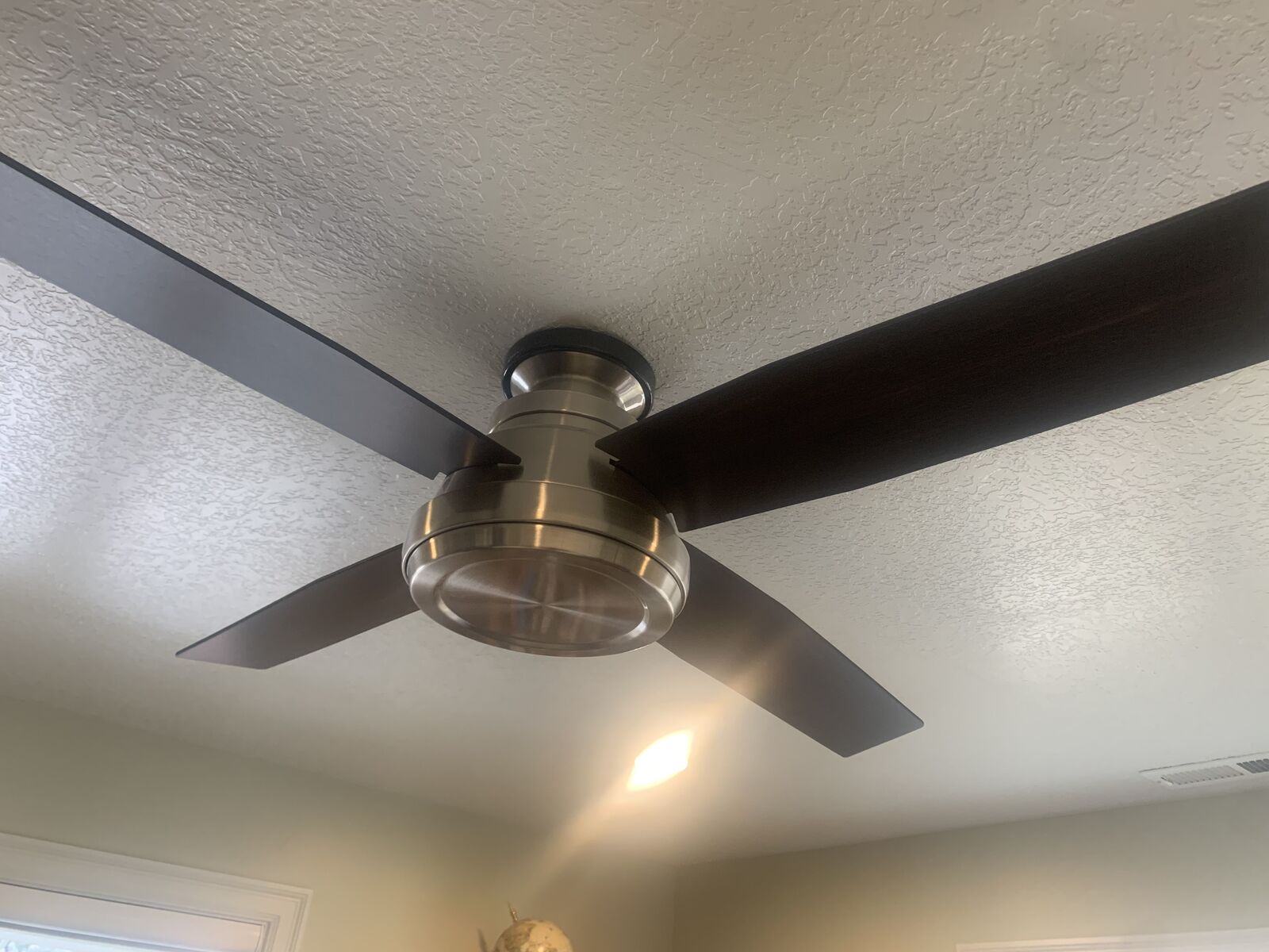 https://www.lowes.com/pd/Hunter-Dempsey-52-in-Brushed-Nickel-Indoor-Flush-Mount-Ceiling-Fan-and-Remote-4-Blade/1000091795