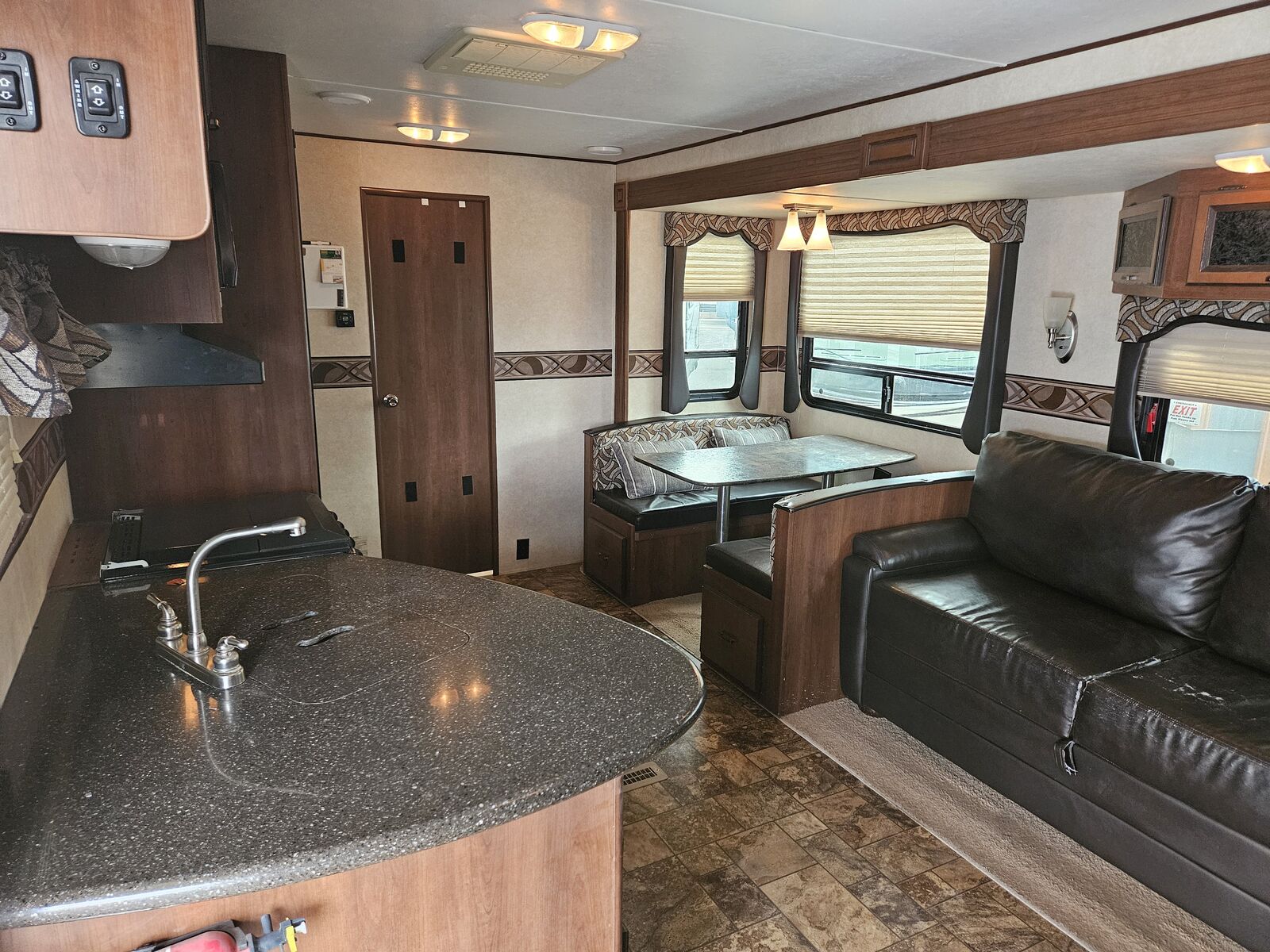 Electric Slide Out Holds Dinette and Sofa that Convert to Sleeping Space!
