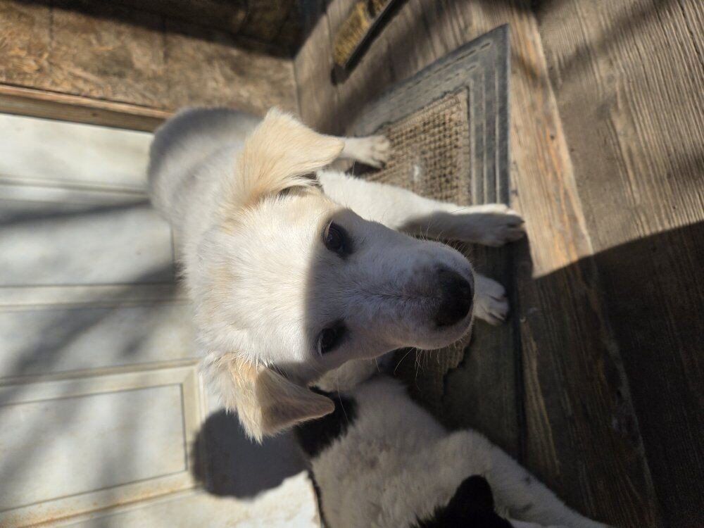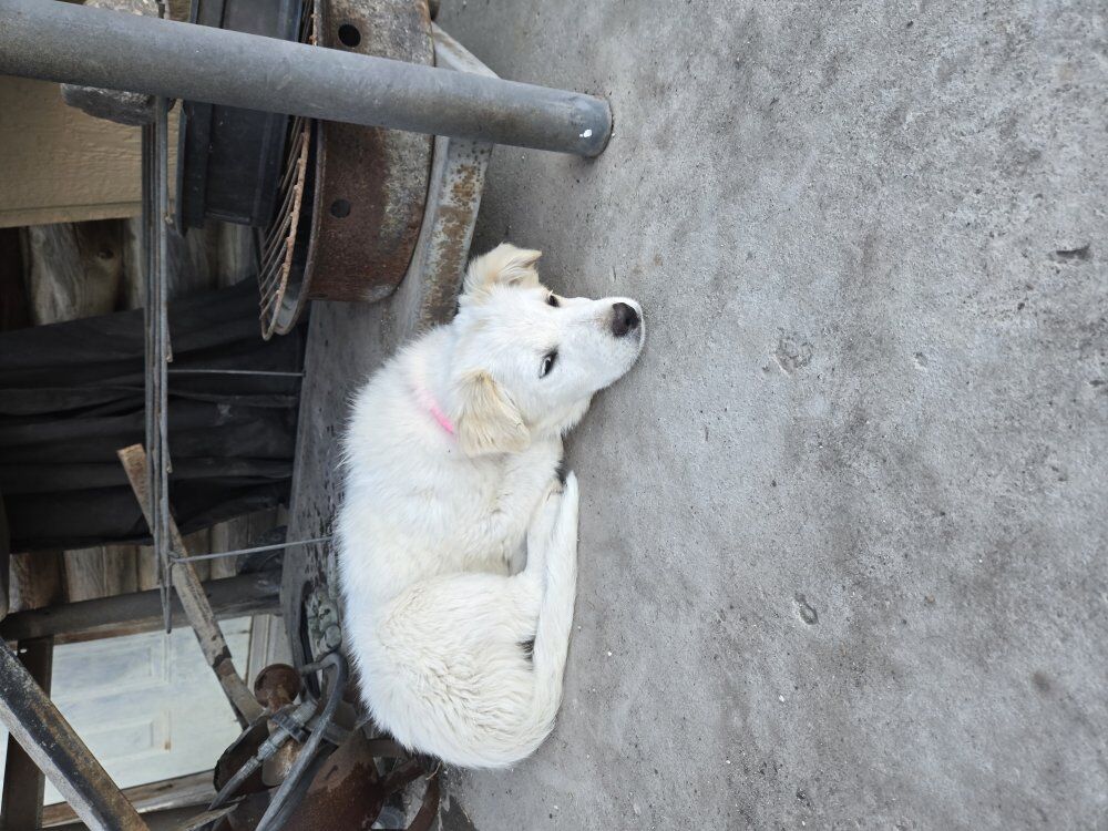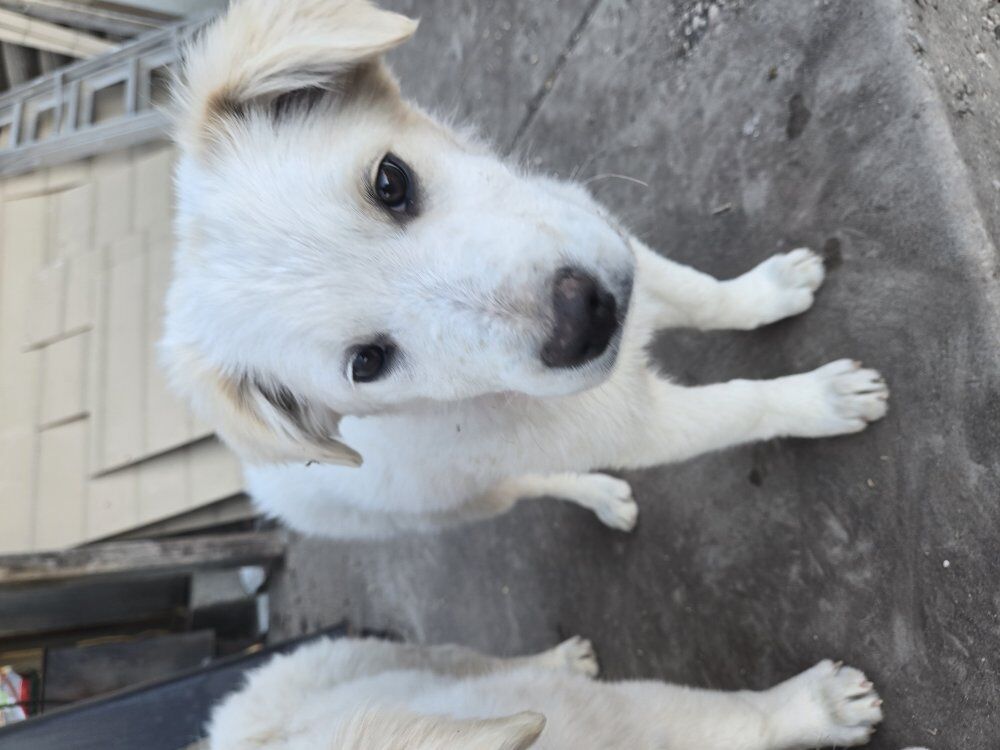 born Oct /26/ 2025. 12 weeks 0ld she has had her 1st set of shots. 1 female. rare white with golden highlights name is Angel. smart , working cattle parents. that get the job done. male puppies have been sold and pictures taken down. thank for looking.