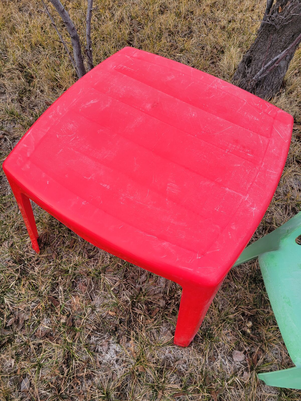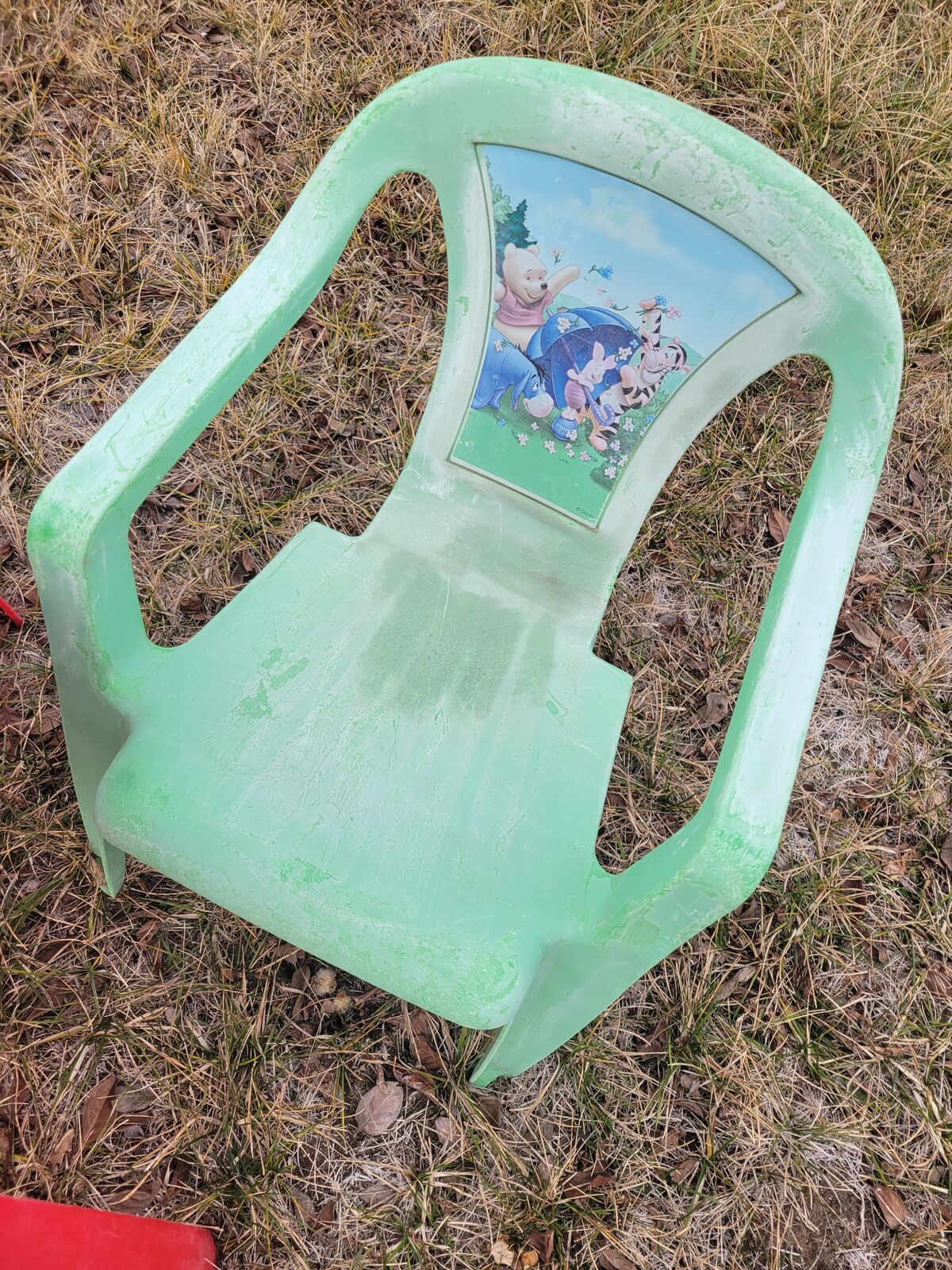 Children toddler kid plastic red table and Disney winnie the poo bear and friends chair