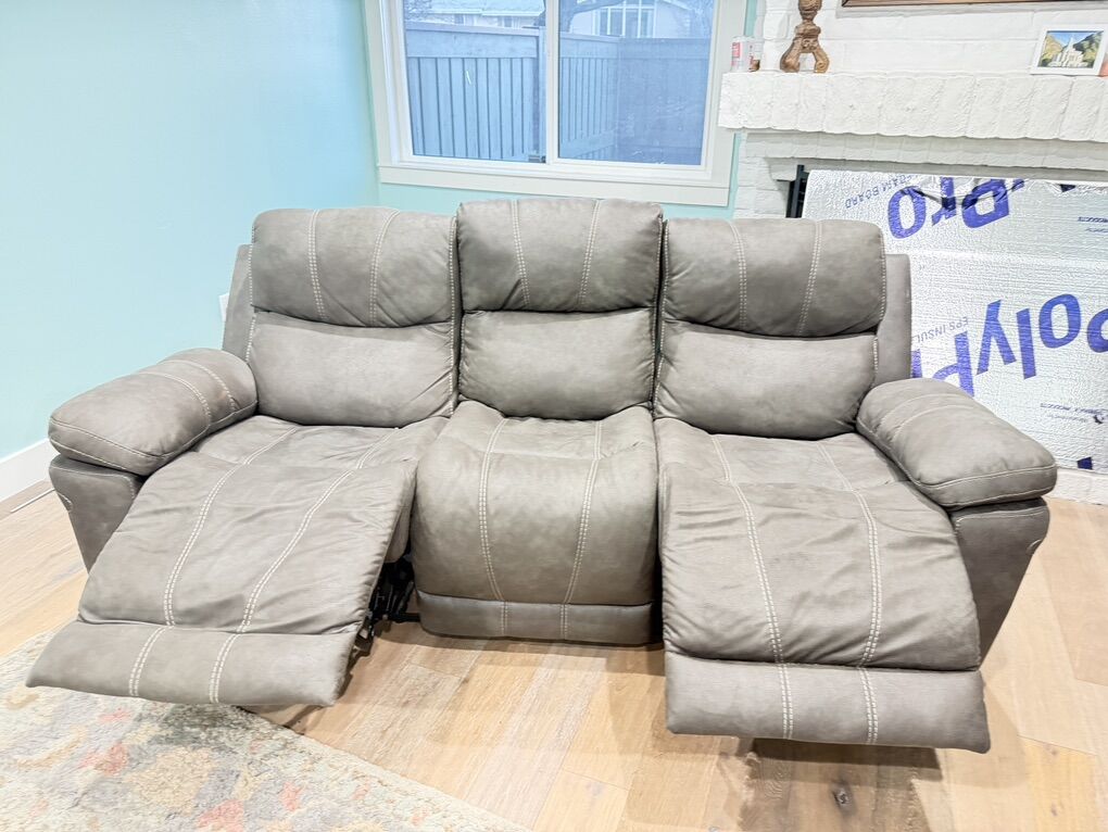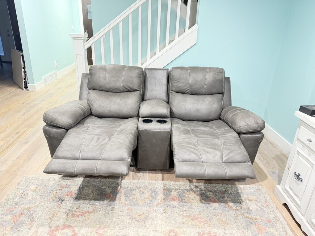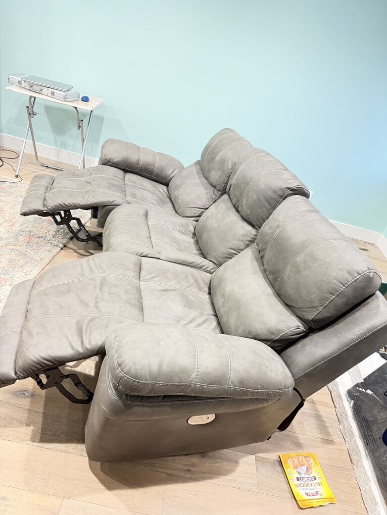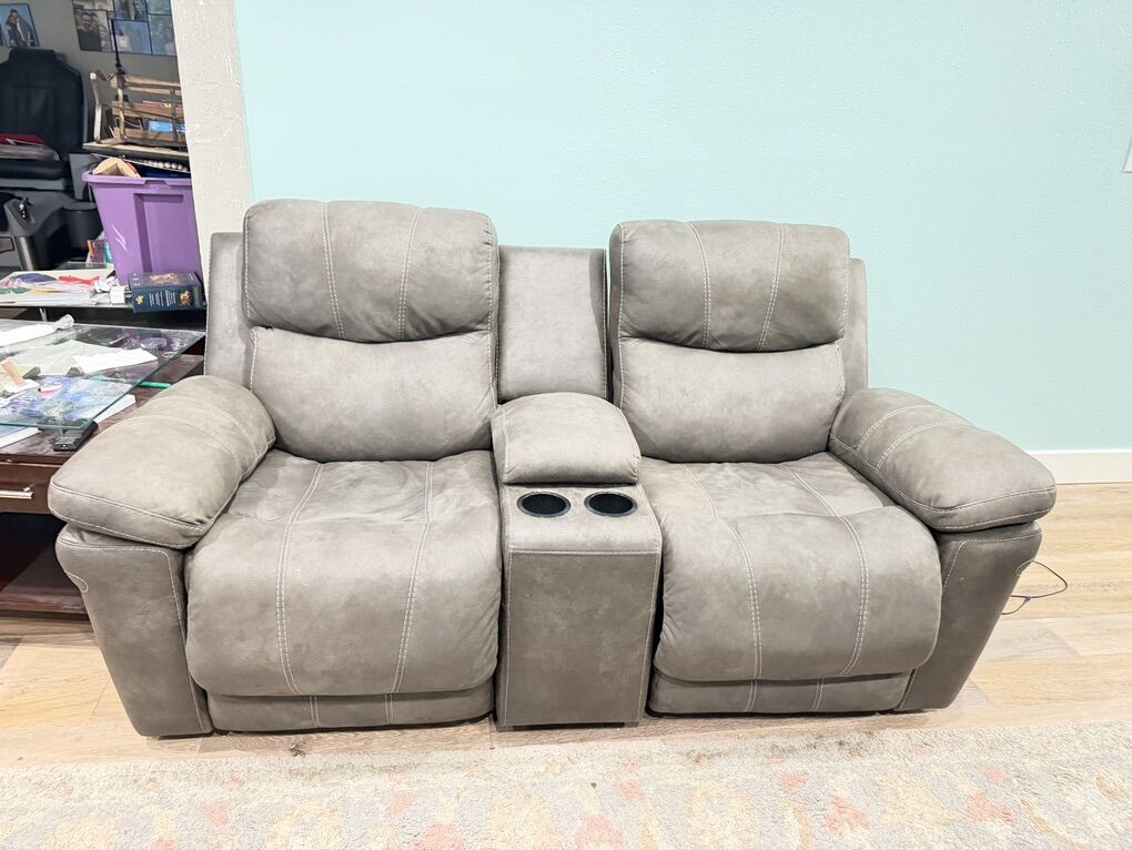 Zellemicrofiber reclining power couch and two duel reclining loveseat with storage compartments all 3 have Adjustable headrest. Less than 5 years old. Everything thing works. Comes from a smoke and pet free home. $1500 for all three.