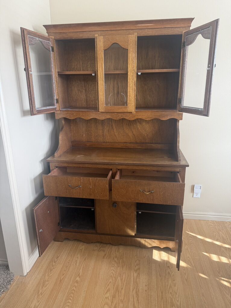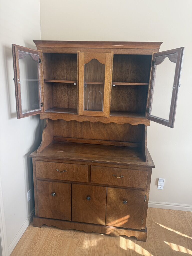 CashAppHand crafted pine hutch / china cabinet. 71” tall 46” wide 20” deep.