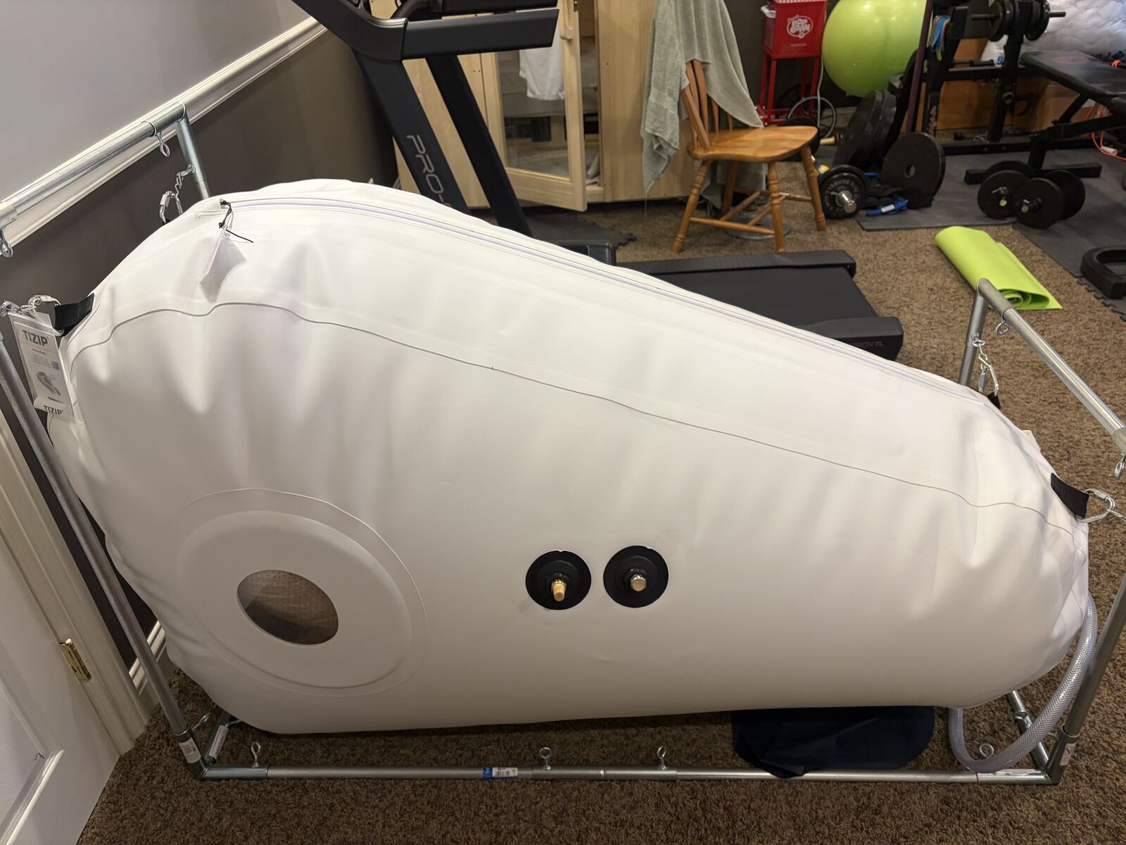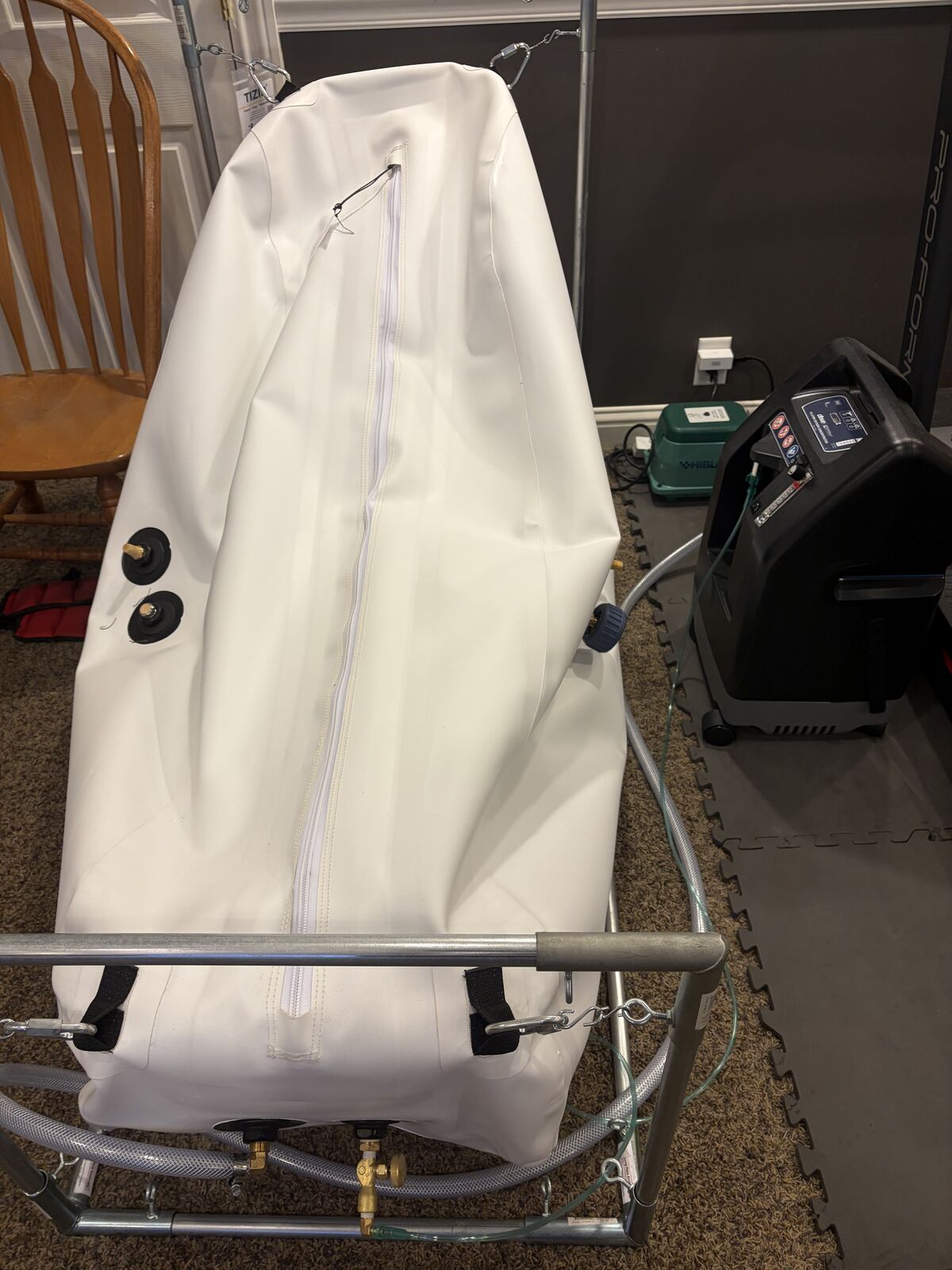 I have a Newtowne Hyperbarics offers state-of-the-art mild hyperbaric chambers for both clinical and home use. It was purchased to help recover for a lung infection, purchased it last March it comes with a Devilbiss concentrator.