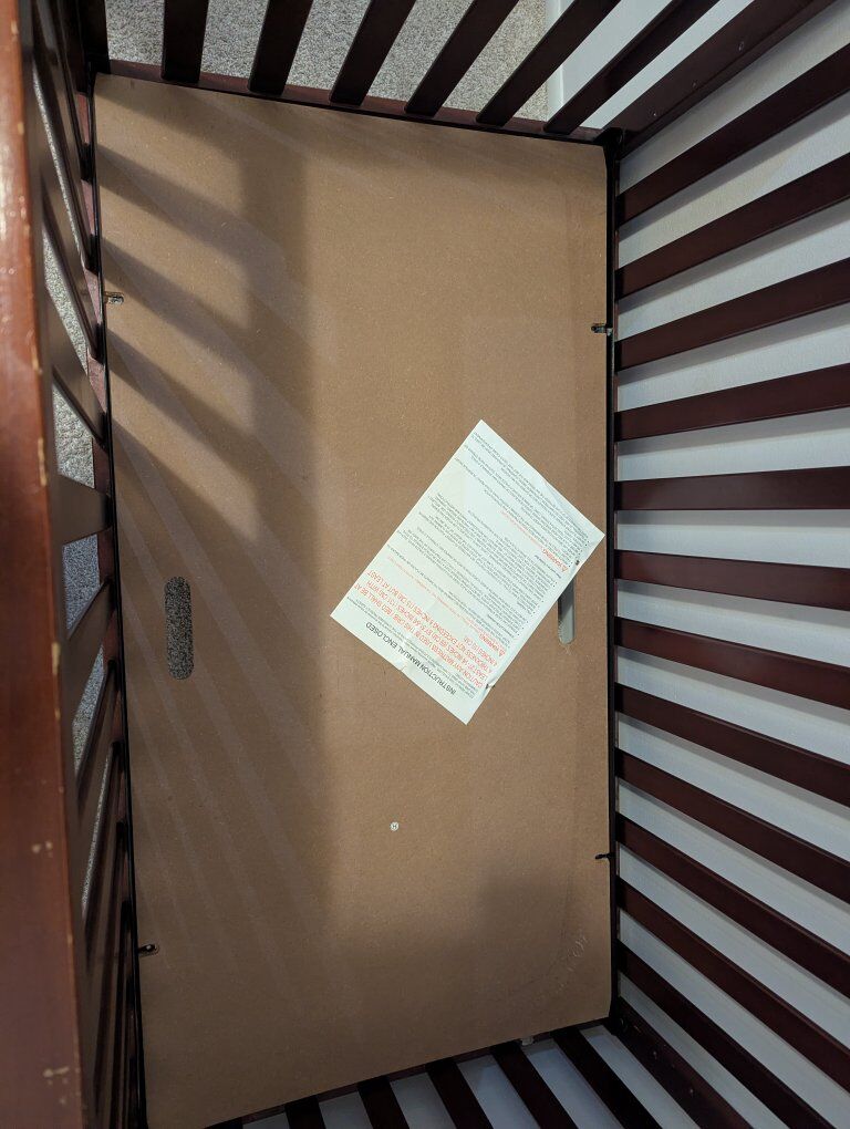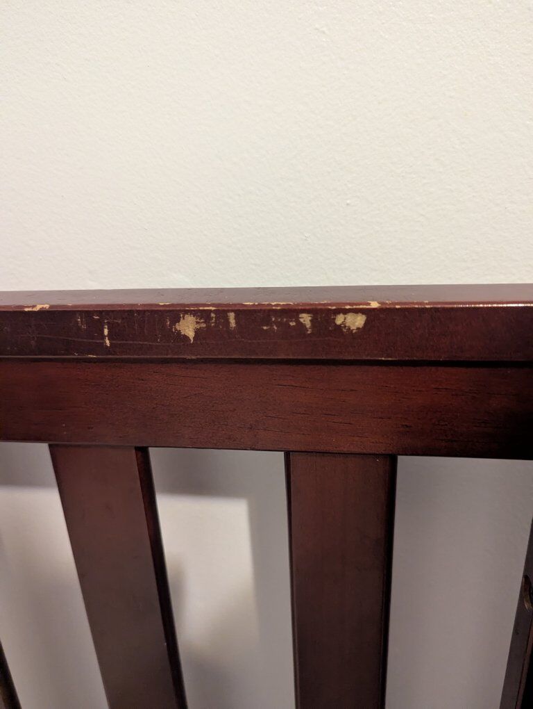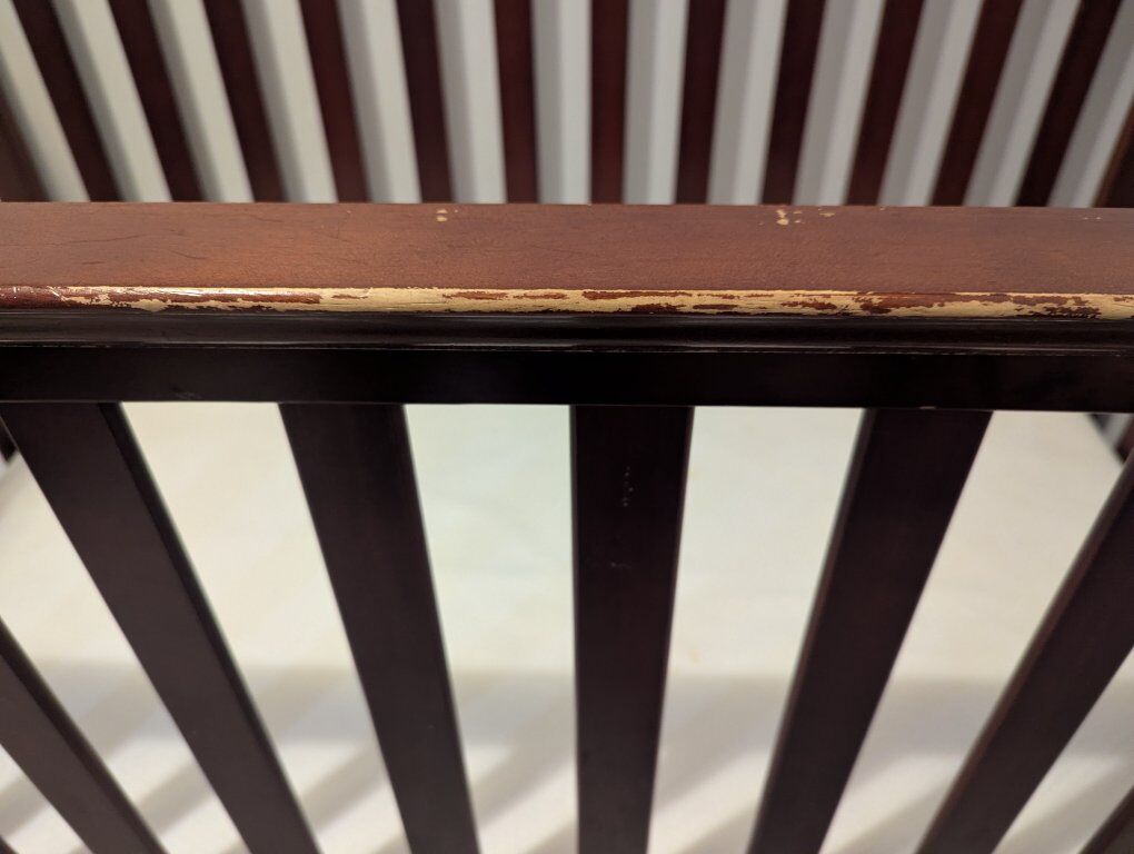 This crib is very sturdy and solid but has some scratches and cosmetic wear. Comes with crib mattress.