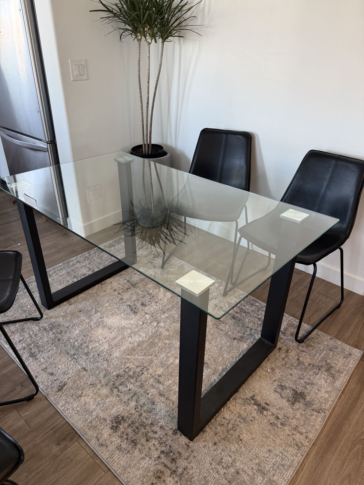 ZelleWayfair Wrought Studio Adymn Glass Top Metal Base Dining Table