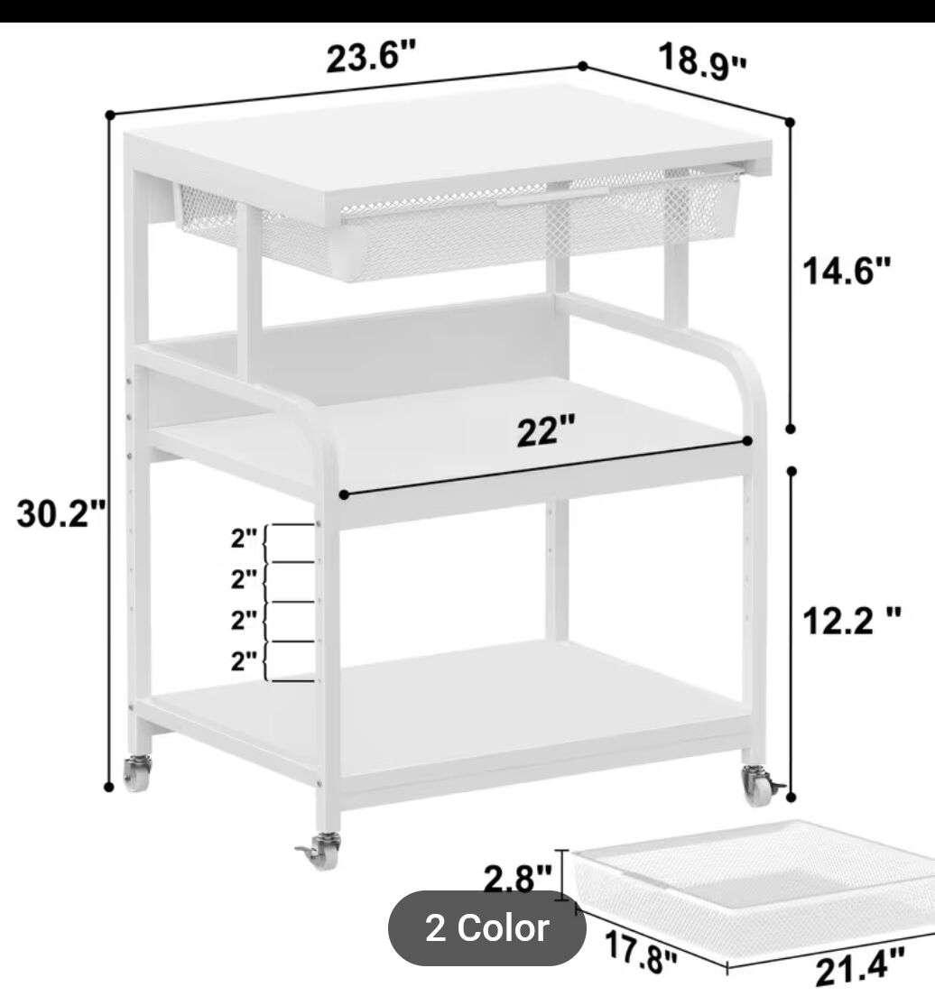 Large Printer stand with drawer 3 Tier printer table with wheels