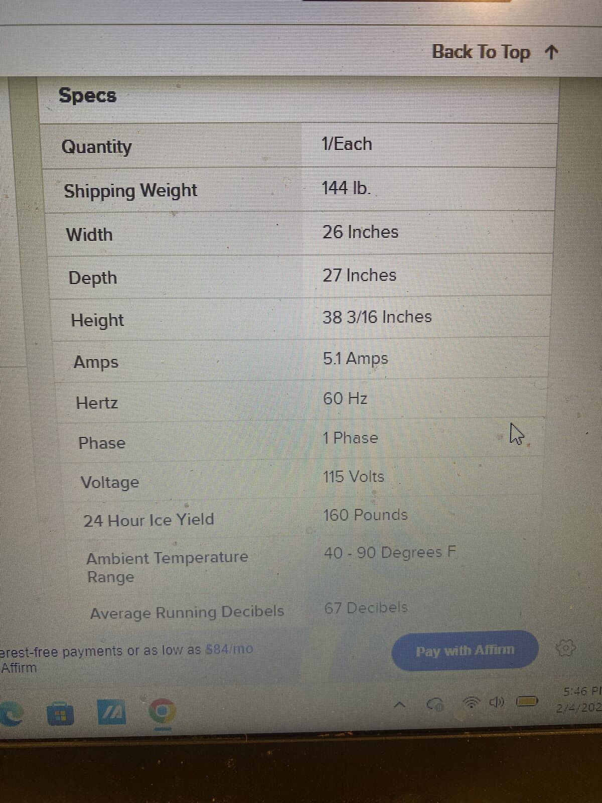 GooglePayCommercial Ice Machine 160 Pound Capacity