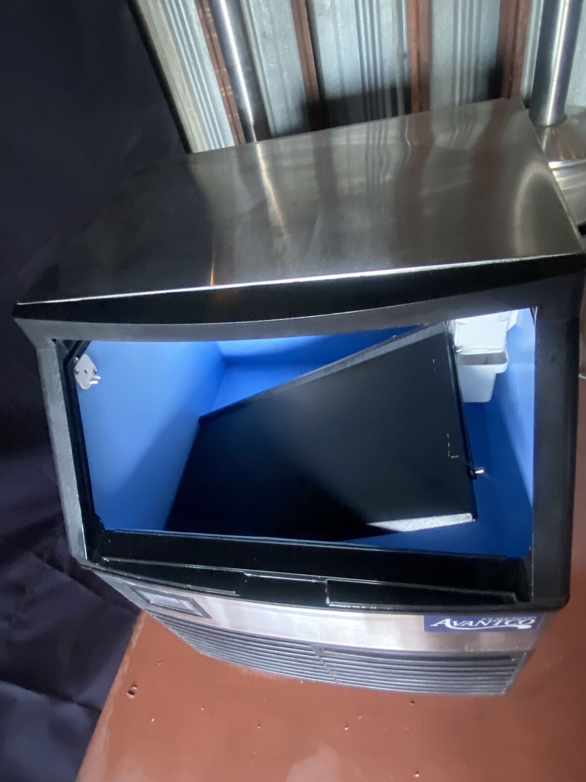 Commercial ice machine in good working condition. Produces ice normally and runs as it should. The only issue is the door needs a repair or replacement part. It sometimes slips off the rail.