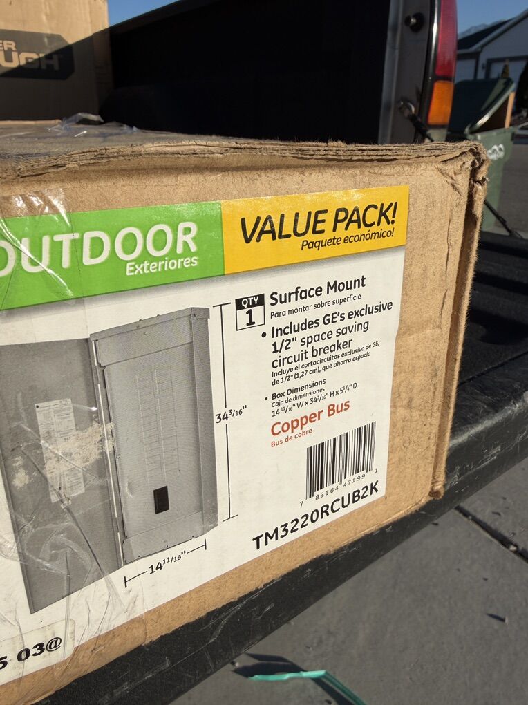 GE outdoor main breaker load center value kit in great condition. Ideal for residential electrical service upgrades, new construction, or replacements. Designed for outdoor use with a durable weather-resistant enclosure.