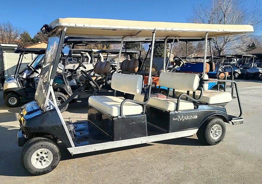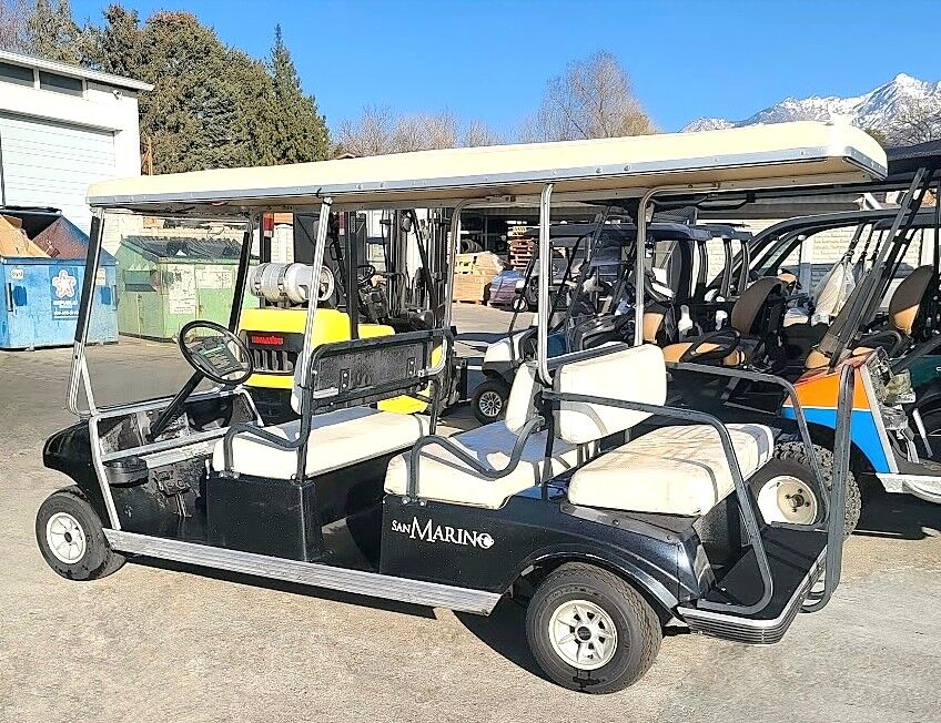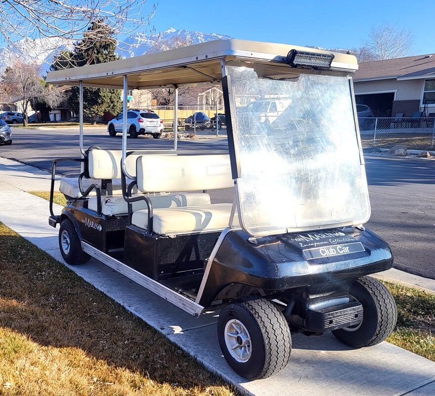 Check out this classic 1998 black Club Car DS 6-passenger electric golf cart. It’s a family favorite for group outings, neighborhood rides, or light tasks.