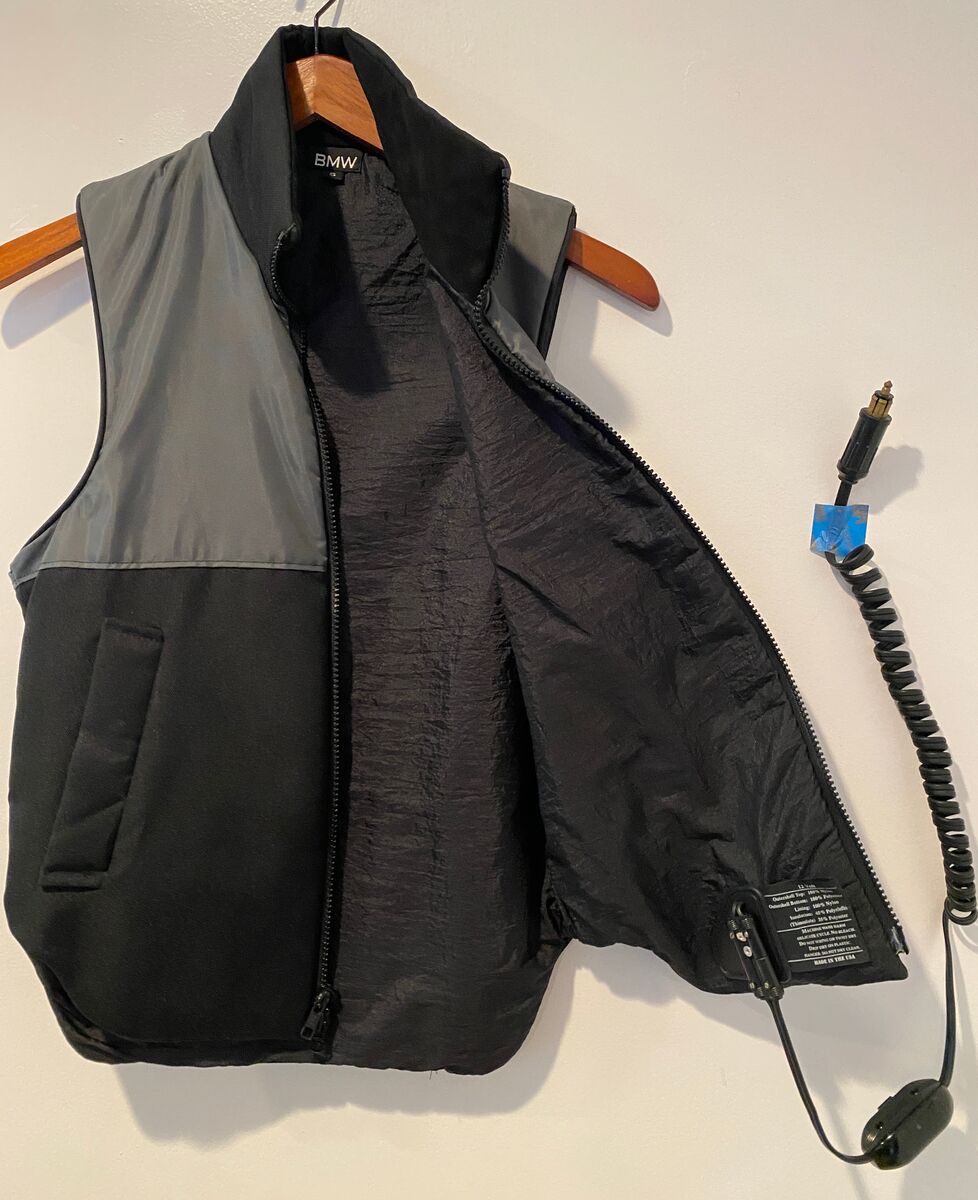 VenmoBrand new, never worn Women's genuine BMW Motorrad heated insulated vest with (needed) 12V cable. Works perfectly. Received it as a gift - and (sob!), no longer riding so I won't use it. Plugs into your motorcycle and keeps you toasty during fall / winter / early spring rides. Fits easily under your motorcycle jacket and is also great to just wear because, well, it's really nice looking. BMW elegance. Women's size Small. Breathable, moisture-transporting, wind-stopping and the high collar / fleece lined neck gives extra warmth and comfort. See pics (fyi - the little piece of blue tape in one pic is just for the picture, so the cord fully showed).