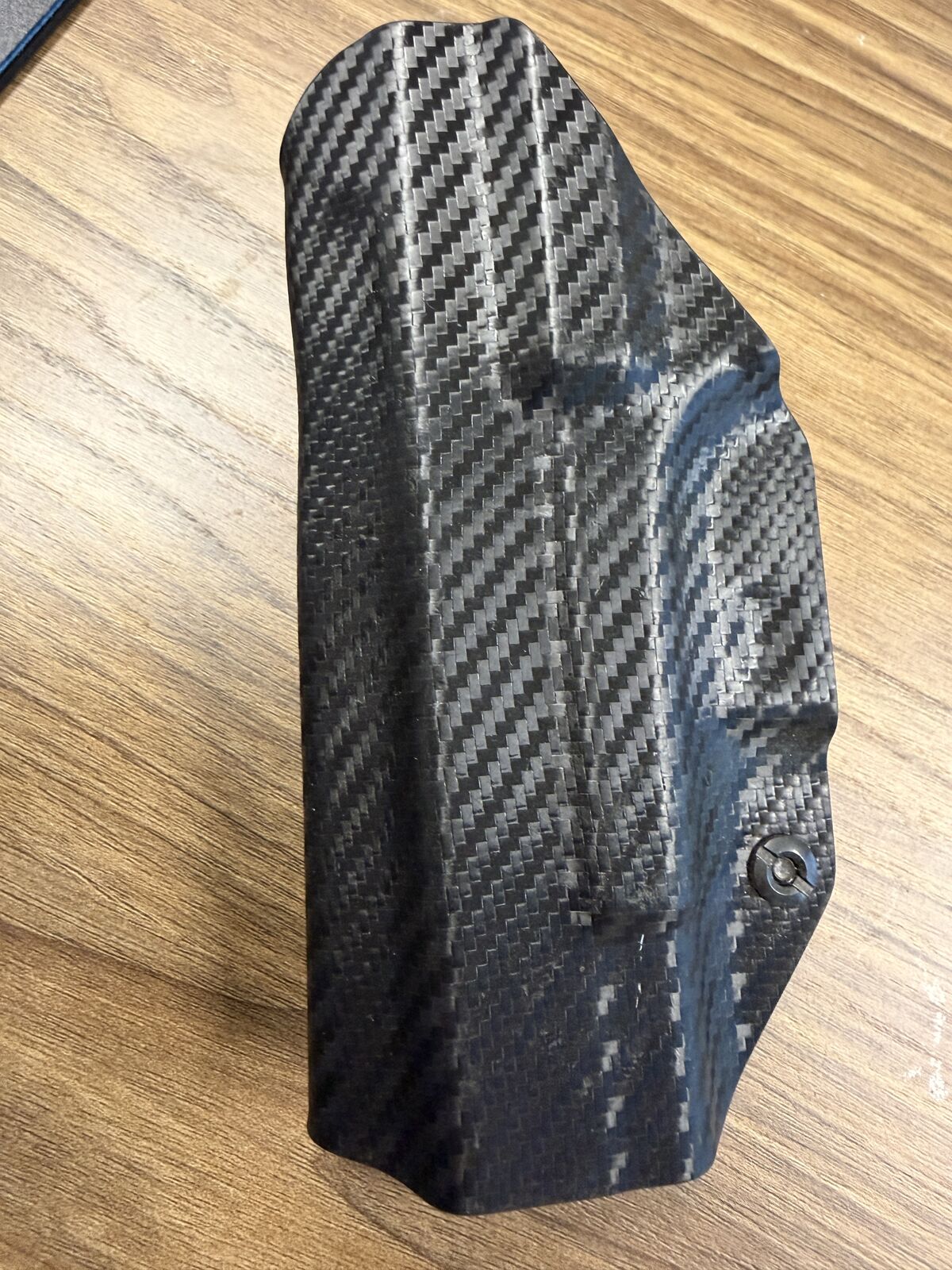 ApplePaySelling a bramd new We The People carbon fiber IWB (Inside the Waistband) holster. This is a top-quality, US-made Kydex holster known for its durability and secure fit. The crisp "click" retention gives you peace of mind all day long.