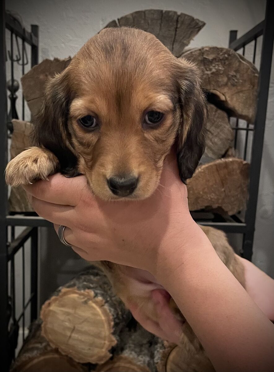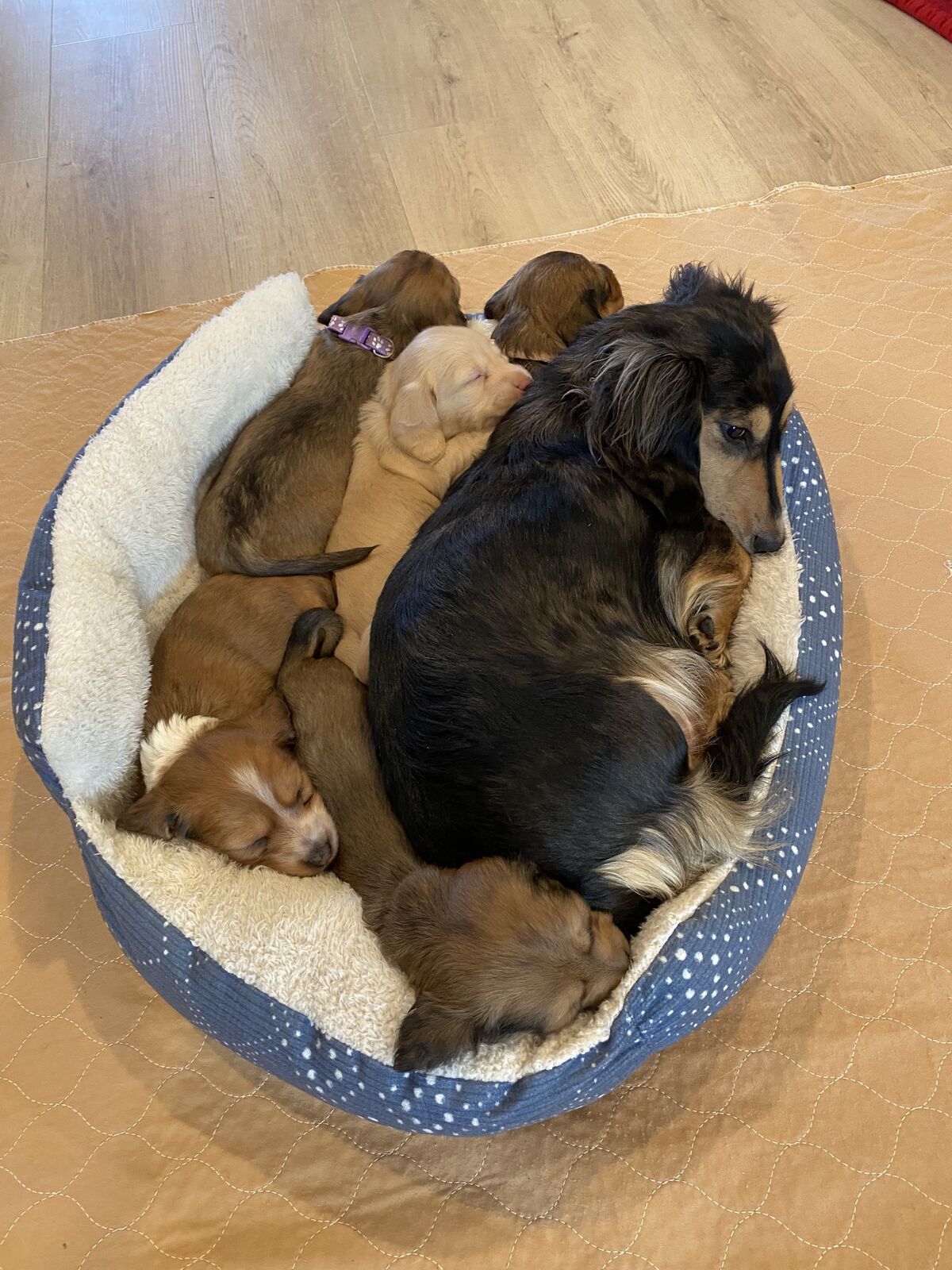 Love Bug is 8 weeks old TODAY (Friday, February 6, 2026). She was born on December 12, 2025, and is one of five pups. She was born with a small umbilical hernia (something that is fairly common). The hernia was fixed on Wednesday by Dr. Utley in Richfield. She is now as good as new. : )