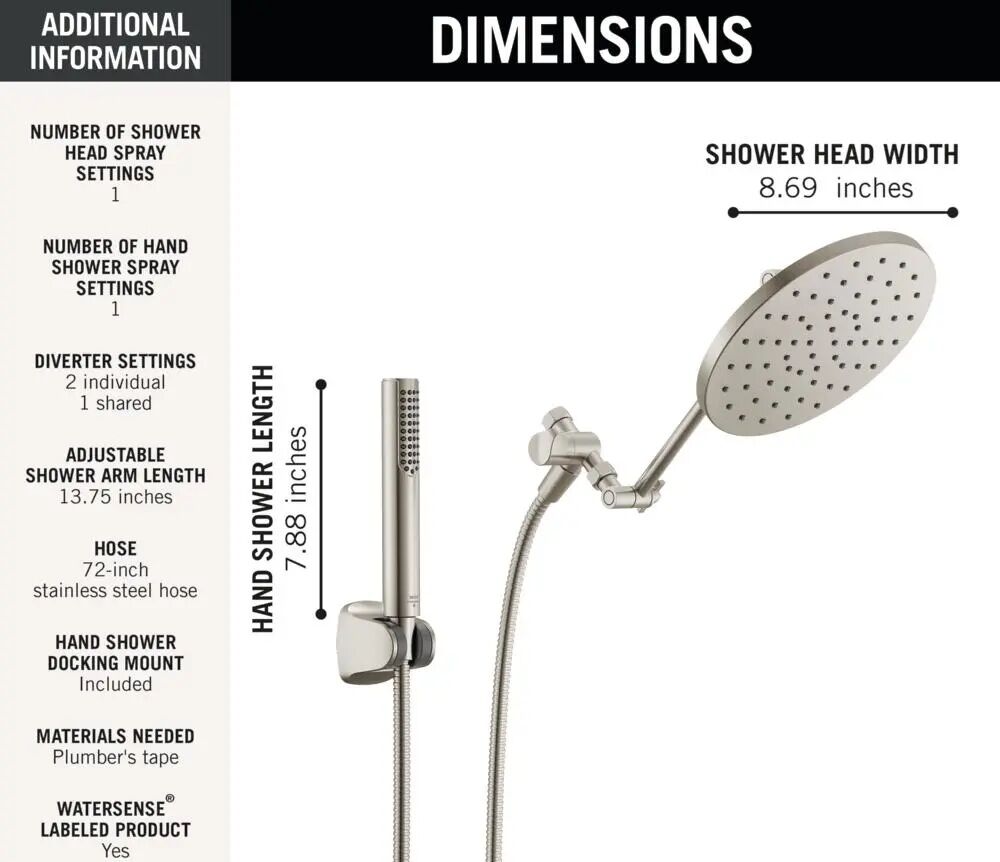 We have one Delta 75107 Adjustable Shower Head with Hand Shower in Chrome 1840088 #103501 available. This shower head has been lightly used and comes out of box.