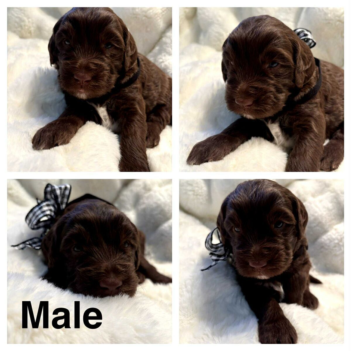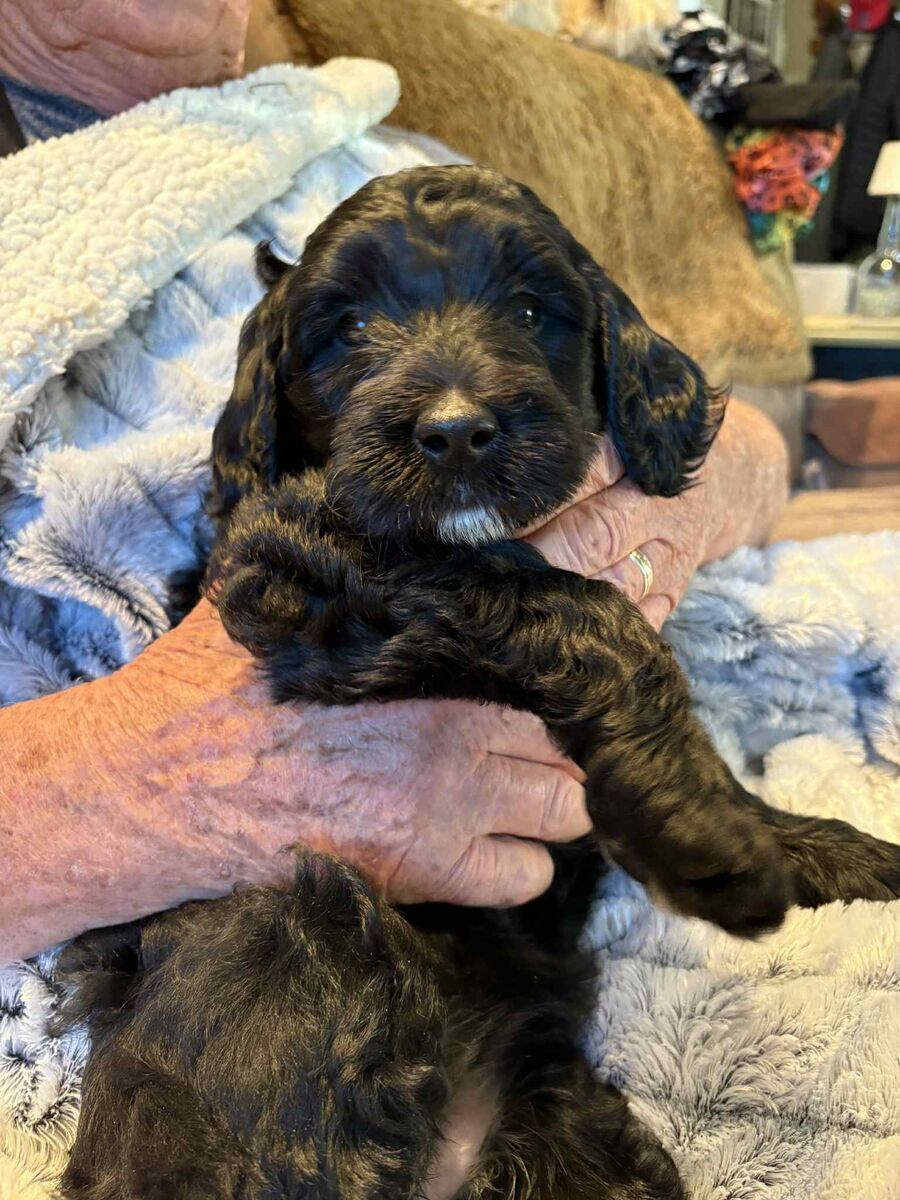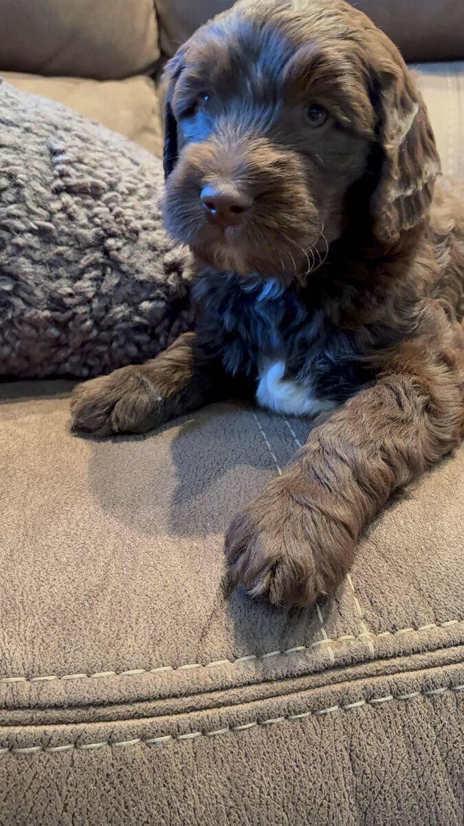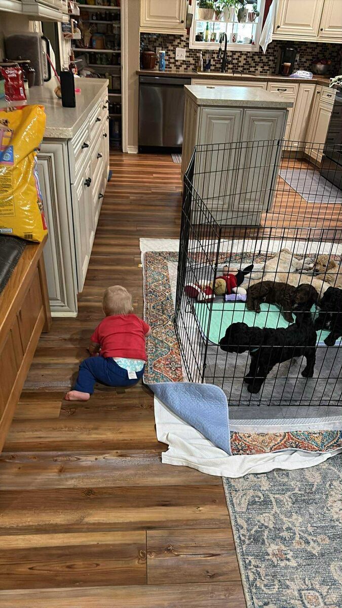 These cuties were born on Chritsmas Day go home is ST Valentine's Day!! They are a Holy Bunch! Mama is 42 lbs SheepaDoodle. Dad is 38 lbs Goldendoole. Text Shaunna Two zero eight-697-one zero zero two. Vaccniated and loved=)) https://BernePoodleDoos.com/