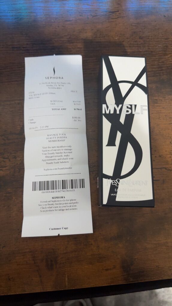ApplePayYSL Myself 3.4 FL OZ comes with a recipt perfect condition brand new