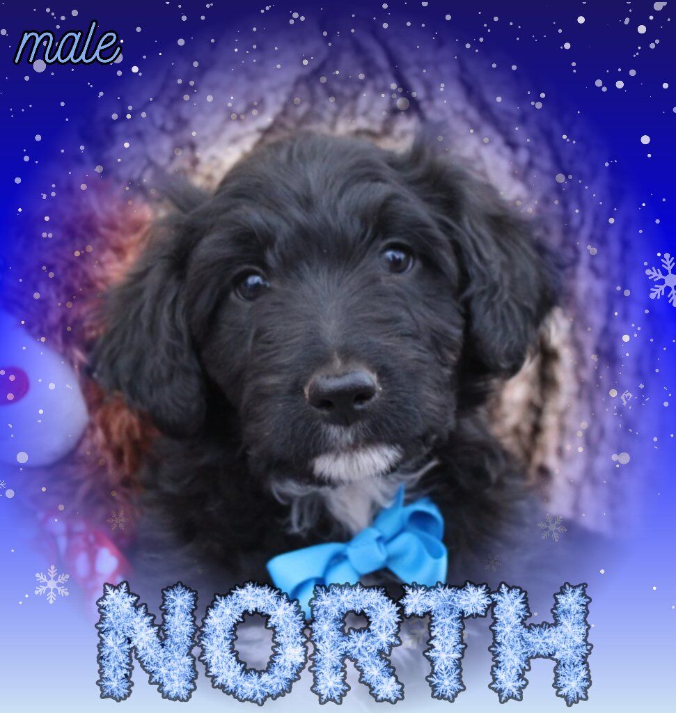 Boys North A black tuxedo boy with white on all four paws and a white chest. Always dressed for formal occasions… like dinner. Polite, handsome, and guaranteed to turn heads wherever he goes. Tundra A black boy with white on his chest. Strong, striking, and quietly confident—he has that calm presence that makes you feel like everything’s going to be just fine. For more on their personalities, text me about a particular puppy.