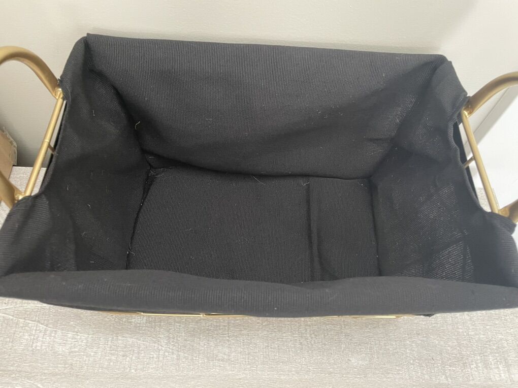VenmoGold tone metal black fabric geometric basket container