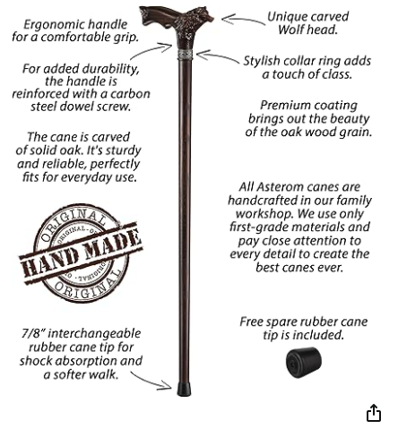Asterom Walking cane-Handmade Wolf Head Cane Cool walking cane for men or women. Great for Seniors. Paid $98.00 Sell for $50.00 Downsizing.