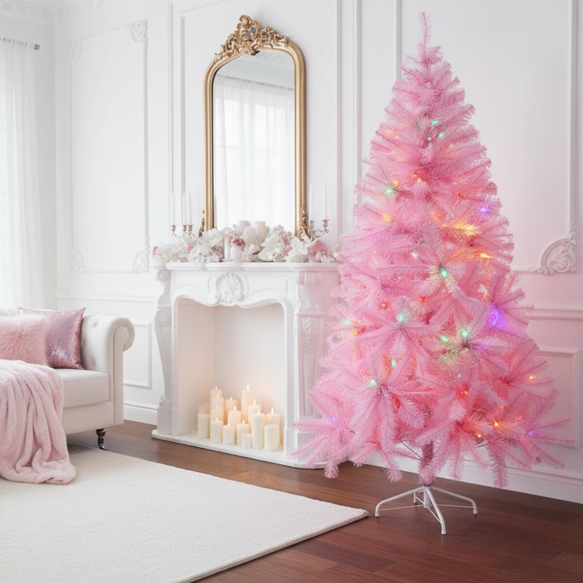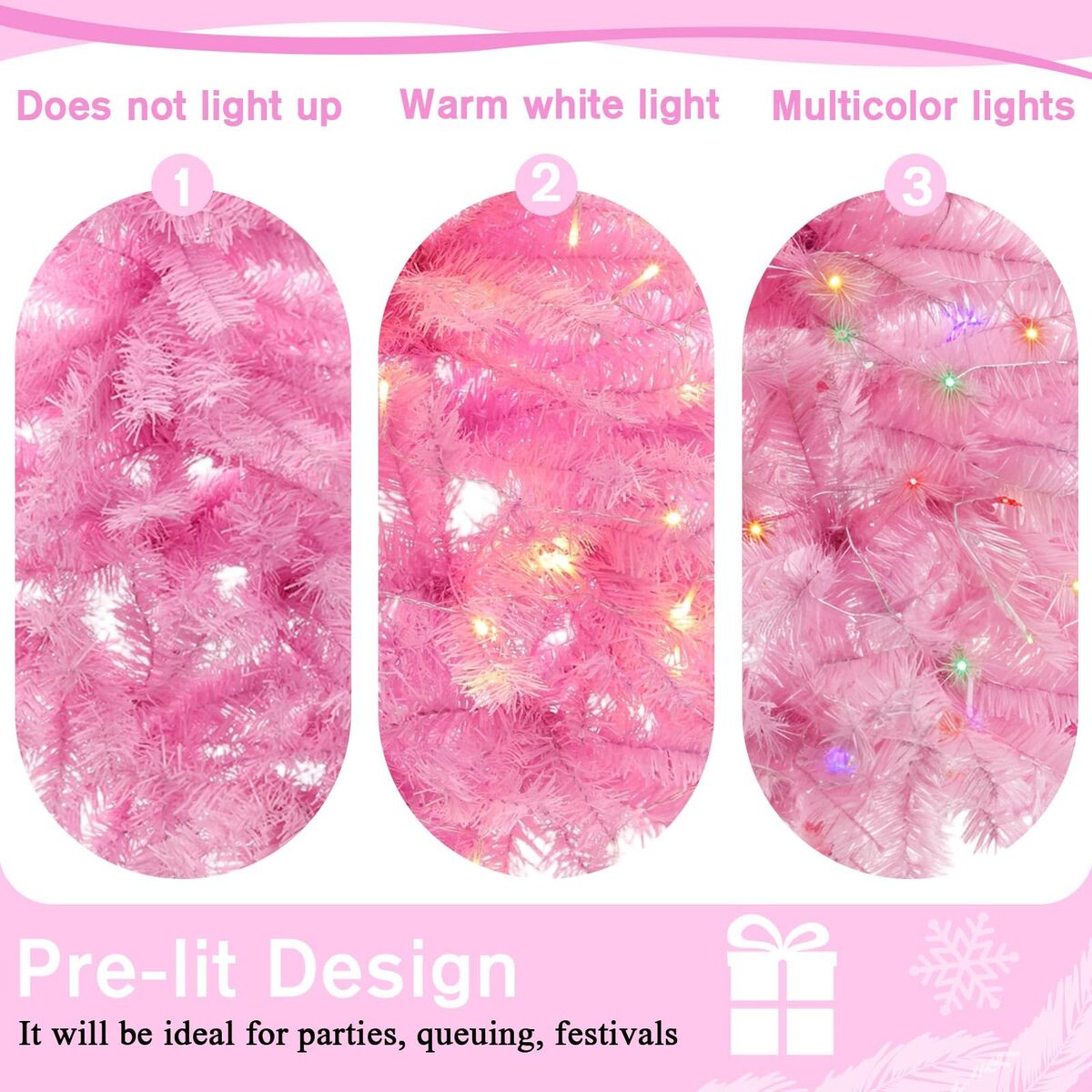 VenmoLunmon Half Christmas Tree for Wall Corner Artificial Christmas Tree with LED Lights Metal Stand Xmas Holiday Decor for Home Indoor Xmas Party Decoration(Pink,6ft)