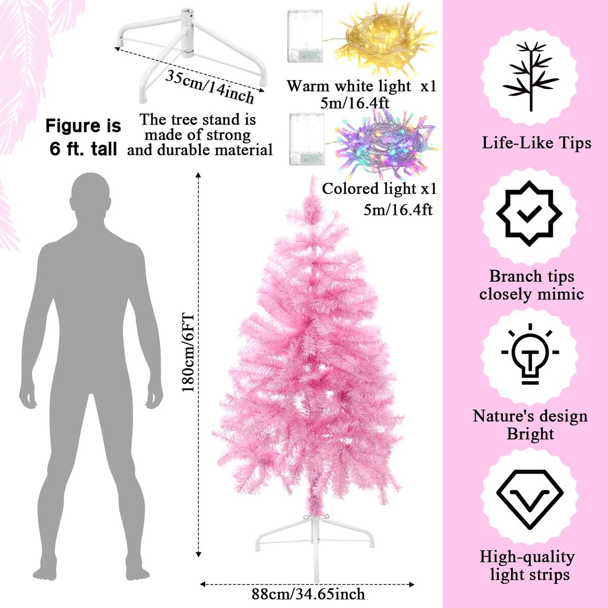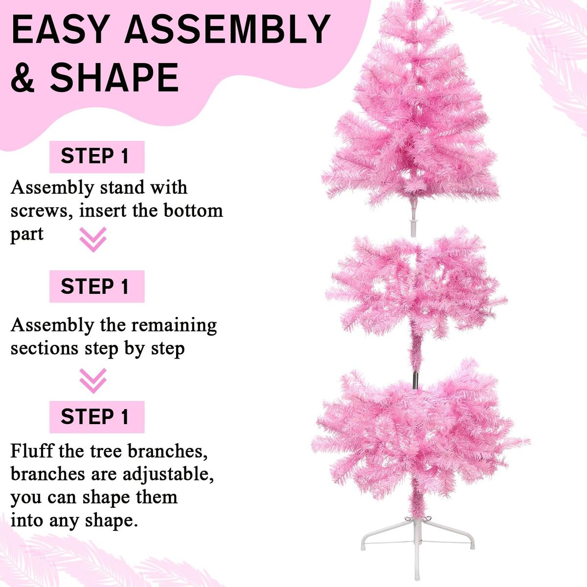Features: Artificial Christmas tree is suitable for Christmas theme party decoration, living room, doorway, shopping mall decoration. The unique half design makes it a stylish and modern choice for holiday decoration Specifications: Material: PVC Color: as shown Size: 4-7ft Package includes: 1 X Christmas Tree 1 x Stand 2 x Light string Notes: Manual measurement, please allow slight errors on size. The color may exist a slight difference due to different screen displays. The battery life is related to the frequency and length of use of the product. If the frequency of use is high, and one-time use long, the battery life will be relatively short Warm reminder: "For safety and longer life, always fully unfold the bulbs before use. Bundling them can cause overheating and hazards." 219852 2-1-26 00.2 rt58