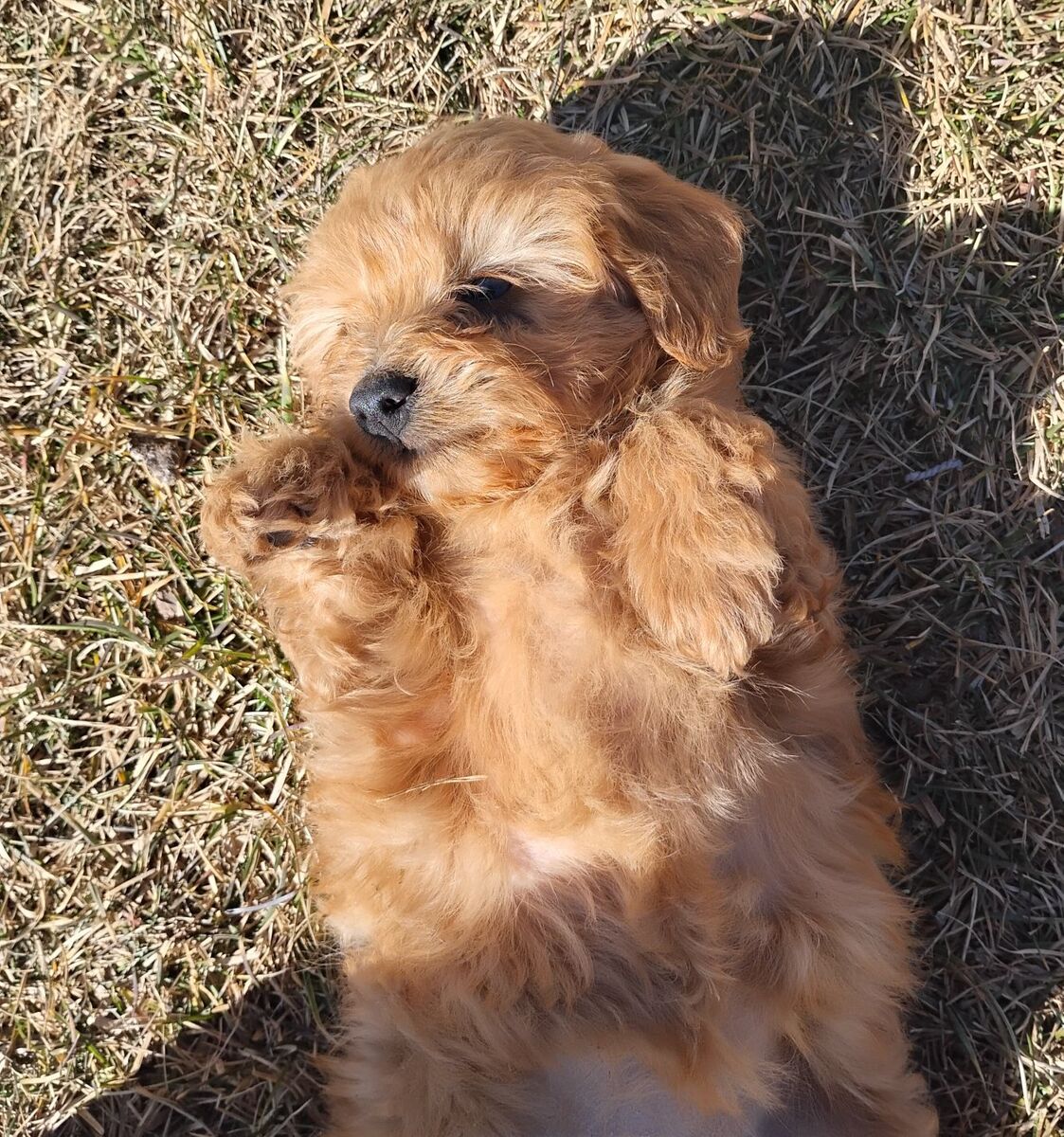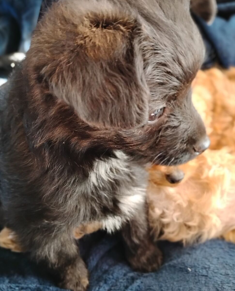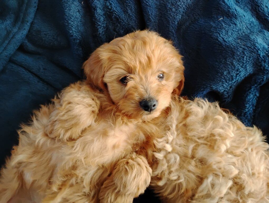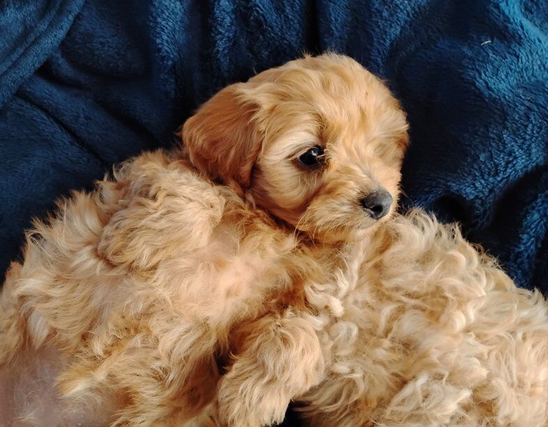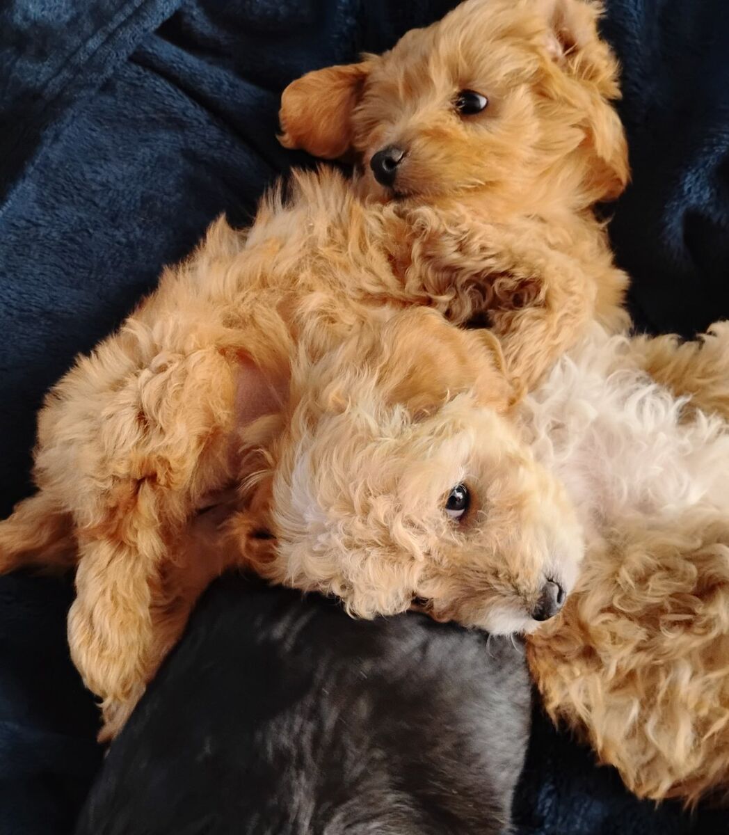 $400 boy black the other asking $ 600 for the red other female $ 400 mom is Aussiedoodle toy Dad toy poodle they have first vaccine dewormer done this will be around 9 lb toy poodle height been around children and other pets