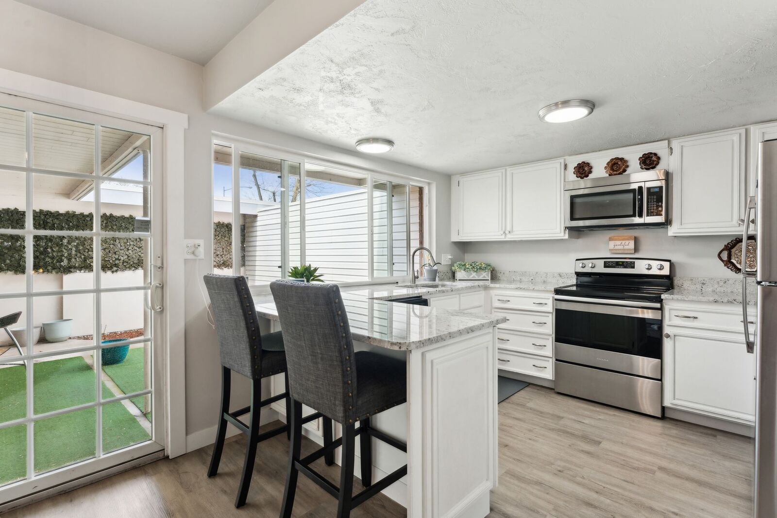 Spacious living in newly renovated town home in desirable Three Fountains. Each bedroom has private bathroom attached. Brand new kitchen appliances, granite countertops and remodeled bathrooms. Condo includes one bedroom with balcony (w/attached full bathroom), a second bedroom/office (w/attached full bathroom), living room, kitchen, dining area. Oven, microwave, fridge/freezer, dishwasher included. Washer dryer included. 1 covered parking space with additional, on-street parking. Utilities, up to $150/mo total, included. Internet extra. Plenty of storage space. Community pool and clubhouse.